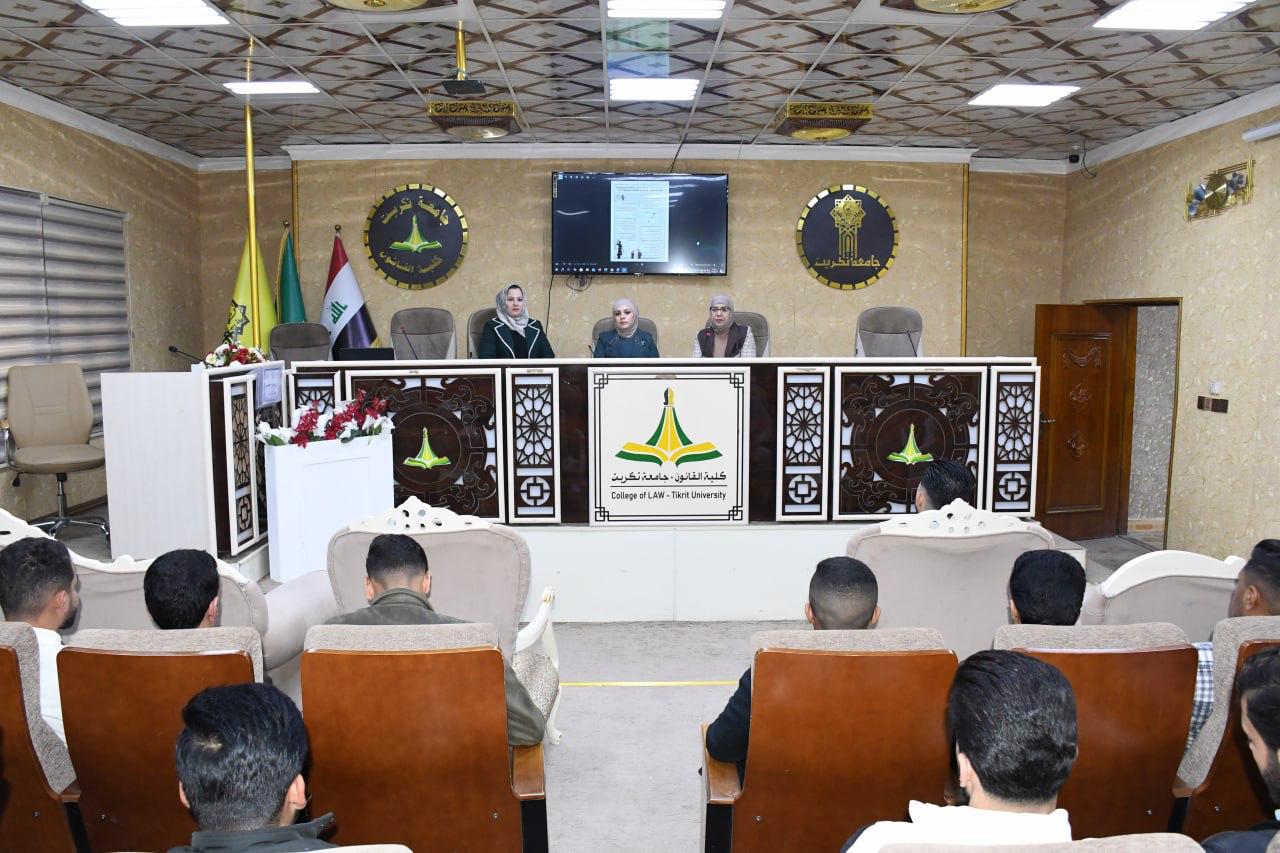 برعاية السيد رئيس جامعة تكريت الاستاذ الدكتور وعد محمود رؤوف ، وبأشراف السيد عميد كلية القانون الاستاذ الدكتور نايف احمد ضاحي ، نظّمت كلية القانون وبالتعاون مع مركز التعليم المستمر في جامعة تكريت دورة علمية بعنوان ( مدى نجاعة الحماية القانونية للمرأة من العنف المعنوي في إطار القوانين الخاصة ) وذلك يوم الثلاثاء الموافق 9-12-2025 على قاعة الشهيد الدكتور ضامن العبيدي والتي قدّمتها كل من :