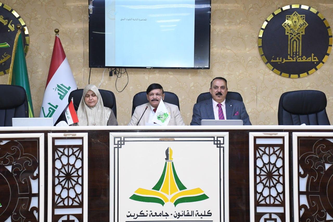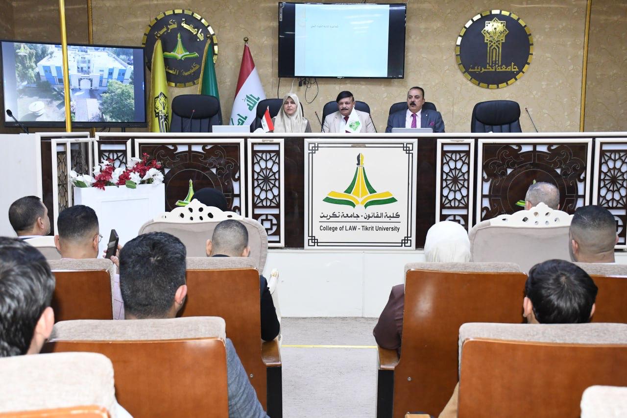 كلية القانون -جامعة تكريت تنظم ورشة عمل بعنوان (القوانين والتشريعات المتعلقة بالتلوث البيئي والسياسات المائية وتحديات تطبيقها ).