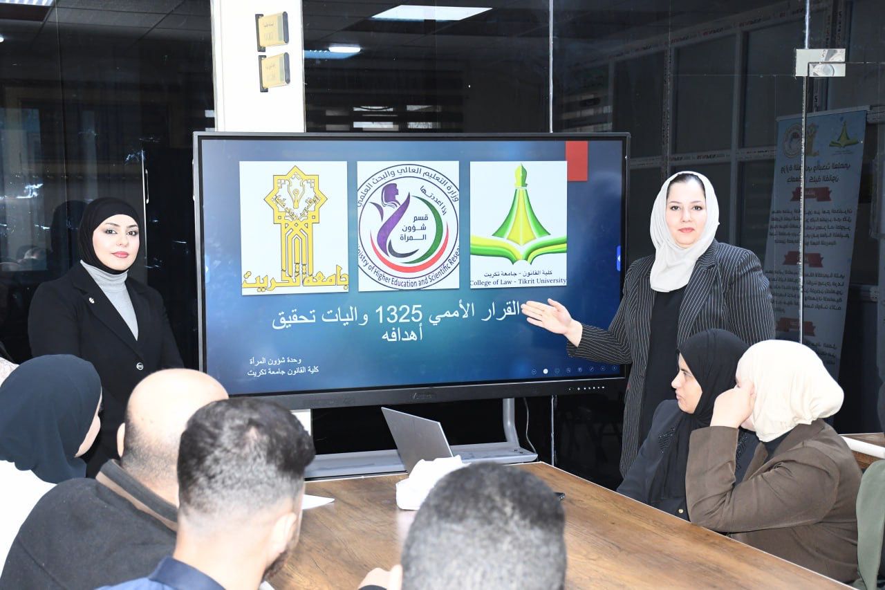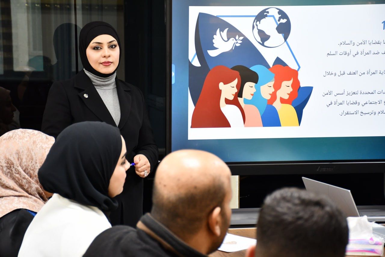 كلية القانون تنظم دورة علمية حضورية بعنوان( دور المرأة في تحقيق التنمية المستدامة في إطار القرار 1325 والقوانين الخاصة).