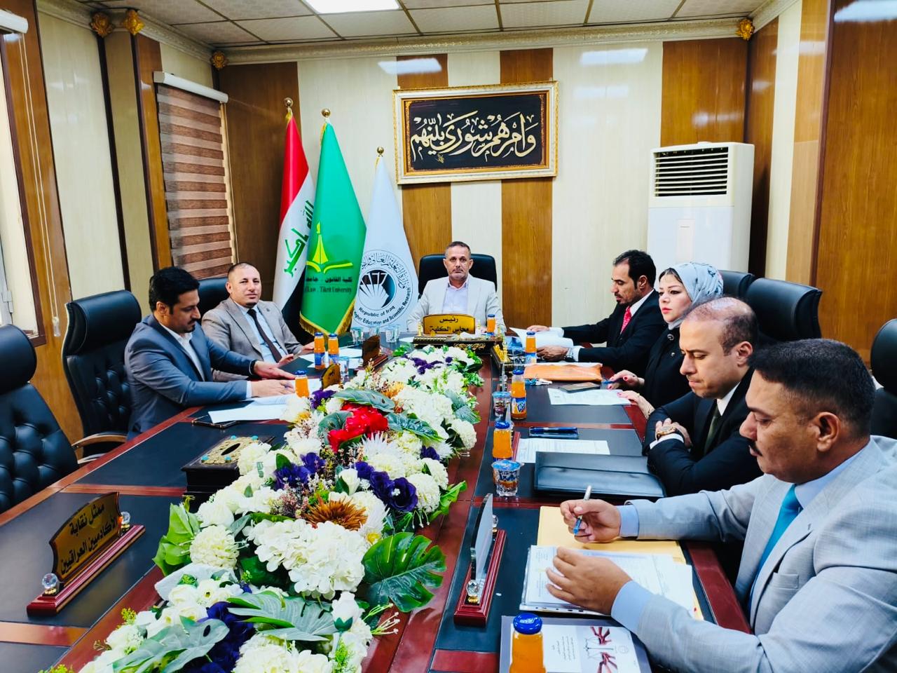 عقد مجلس الكلية صباح يوم الاربعاء الموافق 22-10-2025 جلسته الرابعة ، بحضور السيد رئيس المجلس الاستاذ الدكتور نايف احمد ضاحي ، وحضور اعضاء المجلس كافة وقد ناقش المجلس عدد من المواضيع المطروحة مع جدول اعماله واتخذ القرارات المناسبة بشأنها سائلين الباري عز وجل ان يوفق الجميع لما فيه خدمة بلدنا الحبيب.