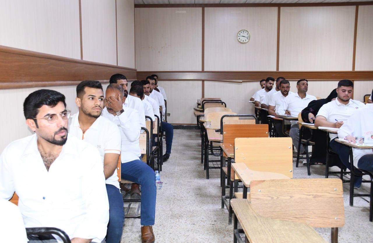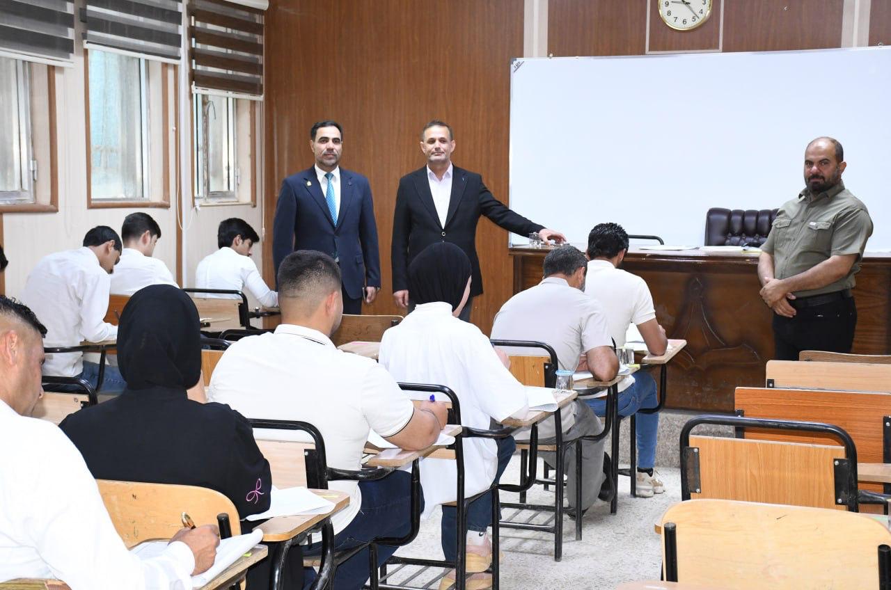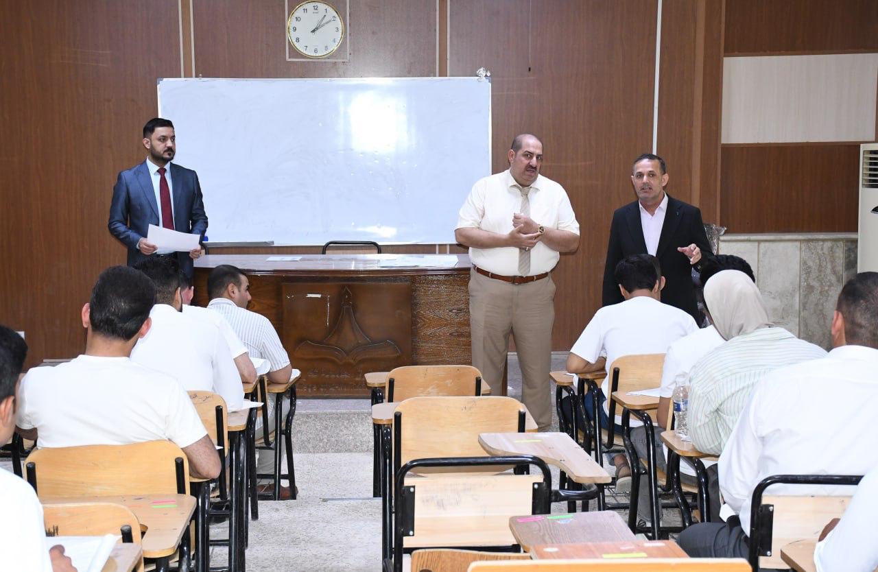 تفقد السيد عميد الكلية الاستاذ الدكتور نايف احمد ضاحي صباح يوم الاثنين الموافق 26-5-2025 القاعات الامتحانية للاطلاع على سير عملية الامتحانات النهائية لطلبة الدراسات الاولية المرحلة الاولى وقد اثنى السيد العميد بالجهود المبذولة من قبل السادة المعاونين و رؤساء الفروع العلمية واللجنة الامتحانية وجميع القائمين على سير العملية الامتحانية حيث جرت في ظل الاجواء المناسبة وضمن السقف الزمني المحدد لاداء الامتحان، وكما اكد على الطلبة بالالتزام بالزي الرسمي والابتعاد عن حالات الخش ، وبالختام تمنى السيد العميد التوفيق والنجاح لجميع طلبتنا الاعزاء...