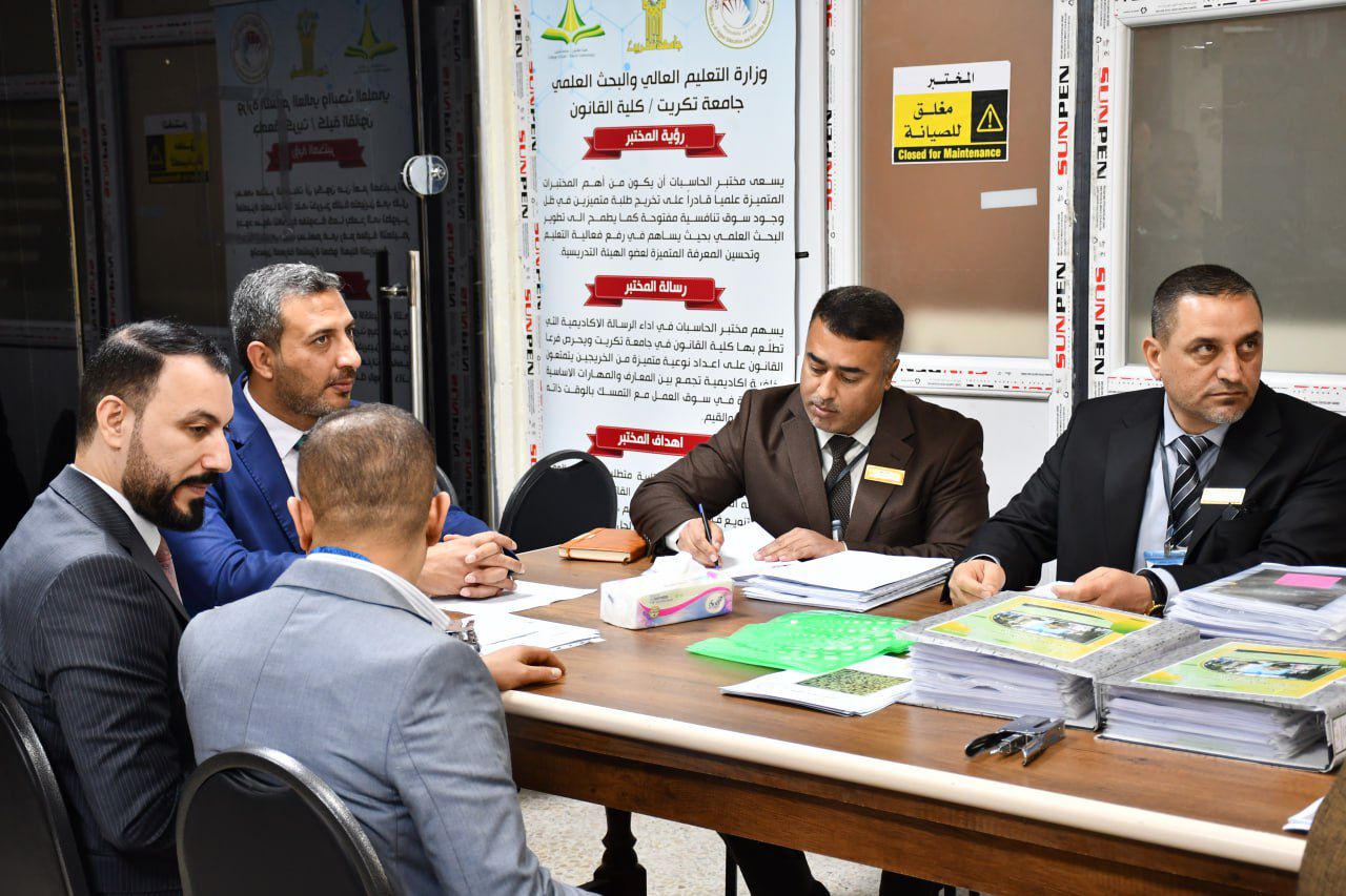 استمرار المتابعة الميدانية من قبل فريق المقيمين الوطني للاعتماد المؤسسي في كلية القانون – جامعة تكريت، ضمن برنامج الاعتماد المؤسسي، زيارة يوم الثلاثاء الموافق 3 شباط 2026