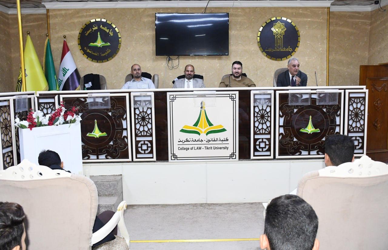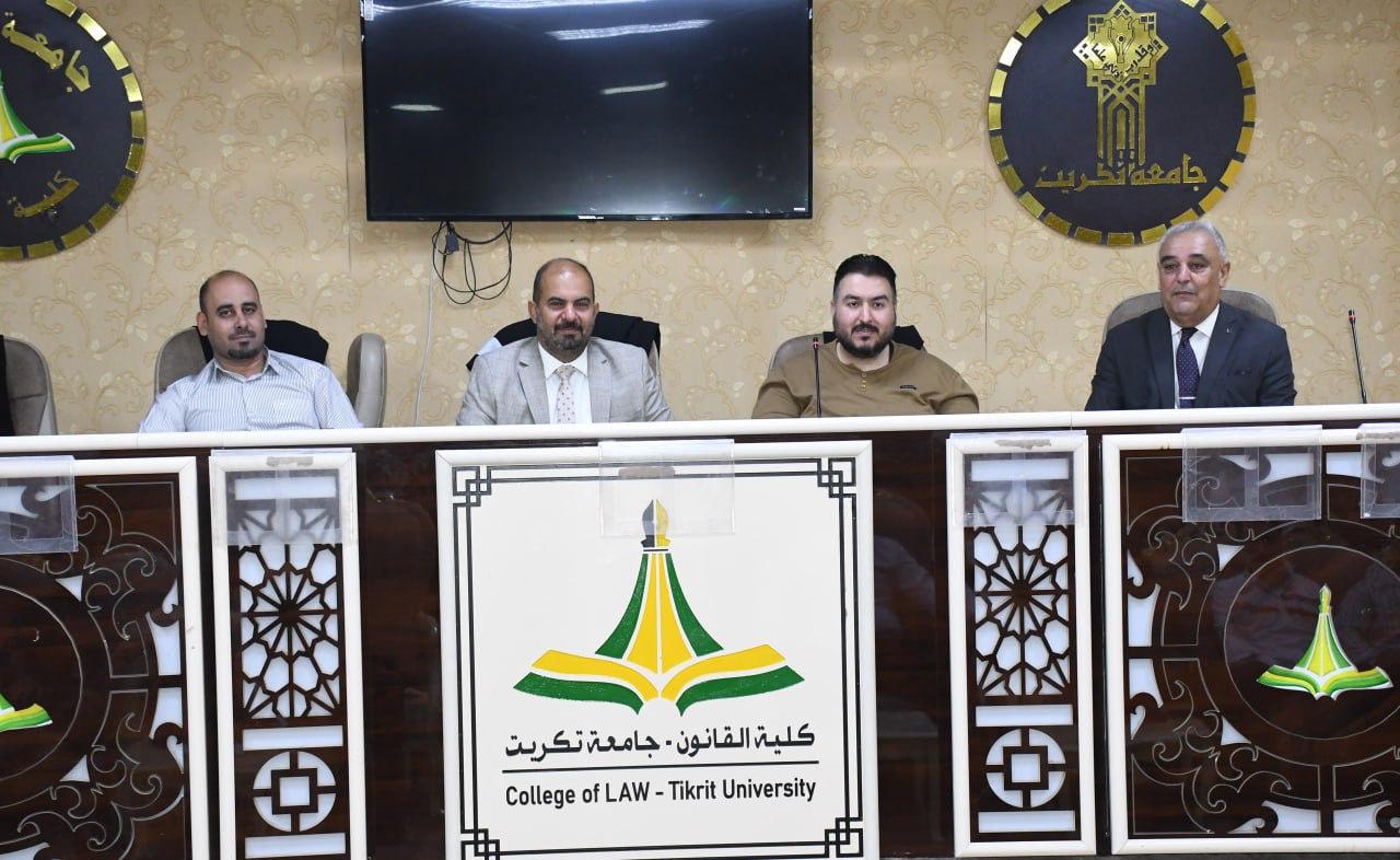 برعاية السيد رئيس الجامعة الاستاذ الدكتور وعد محمود رؤوف ، وبأشراف السيد عميد الكلية الاستاذ الدكتور نايف احمد ضاحي، أقامت كلية القانون – جامعة تكريت يوم الثلاثاء الموافق 28/10/2025 دورة علمية بعنوان (حقوق الموظف العام في القانون العراقي)، والتي قدّمها كلٌّ من :