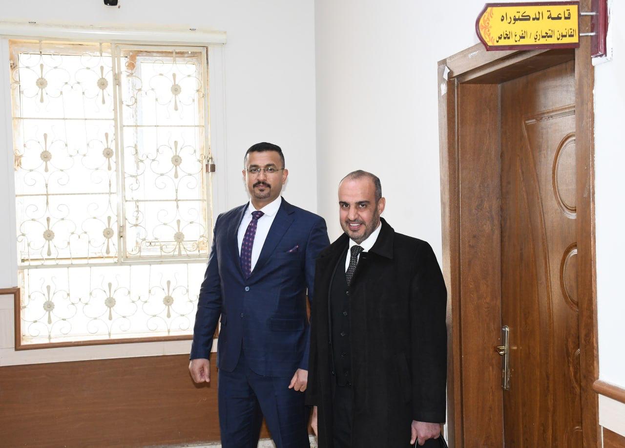 استقبلت كلية القانون في جامعة تكريت صباح هذا اليوم الاثنين الموافق 19-1-2026 لجنة وزارية مختصة من وزارة التعليم العالي والبحث العلمي، وذلك لغرض الاطلاع على الإمكانات العلمية والأكاديمية واللوجستية الخاصة باستحداث دراسة الدكتوراه في اختصاص القانون التجاري ، وجاءت الزيارة في إطار تقييم استيفاء الكلية للمعايير والضوابط المعتمدة من قبل الوزارة، حيث عقدت اللجنة اجتماعاً مع عمادة الكلية والسادة معاوني العميد ورؤساء الفروع وعدد من التدريسيين، جرى خلاله استعراض المناهج العلمية المقترحة والكوادر التدريسية والبنى التحتية،فضلاً عن الخطط البحثية المستقبلية للدراسة المقترحة ، كما قامت اللجنة بجولة ميدانية شملت القاعات الدراسية والمكتبة القانونية والمرافق العلمية وأبدت ملاحظاتها وتوصياتها بما يسهم في دعم مساعي الكلية لاستحداث هذا البرنامج الأكاديمي المهم.