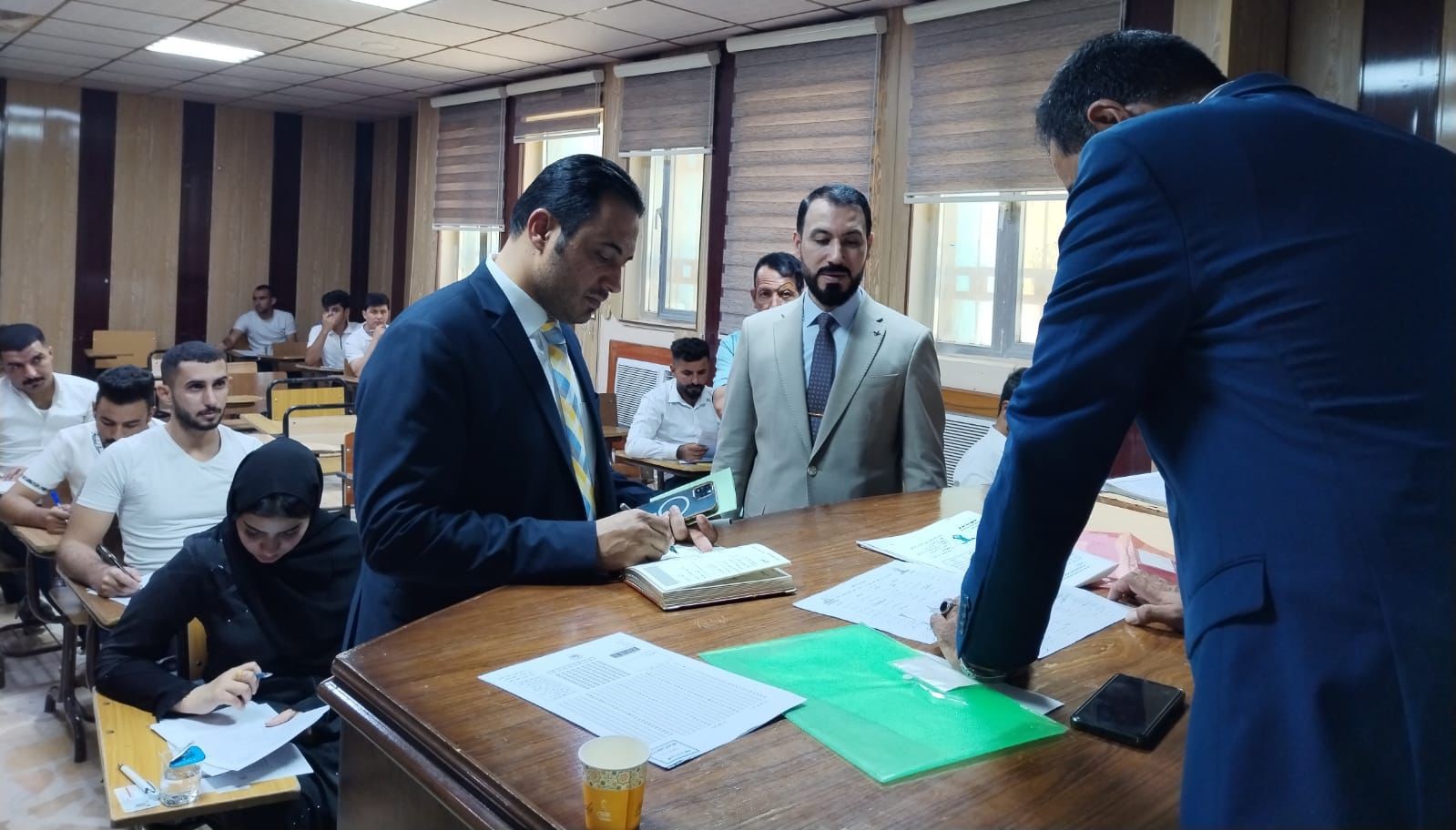 زارت اللجنة المكلفة بمتابعة سير الامتحانات النهائية للعام الدراسي2023-2024 (الدور الثاني) كلية القانون للإطلاع على سير العملية الامتحانية وتوفير كافة المتطلبات انجاح الامتحانات حسب التعليمات الوزارية المعتمدة وقد رافق اللجنة في جولتها الاستاذ المساعد الدكتور علي حسين گعود معاون العميد للشؤون الإدارية،سائلين المولى عز وجل ان يوفق الجميع لما فيه خيراً للعراق وسموه.