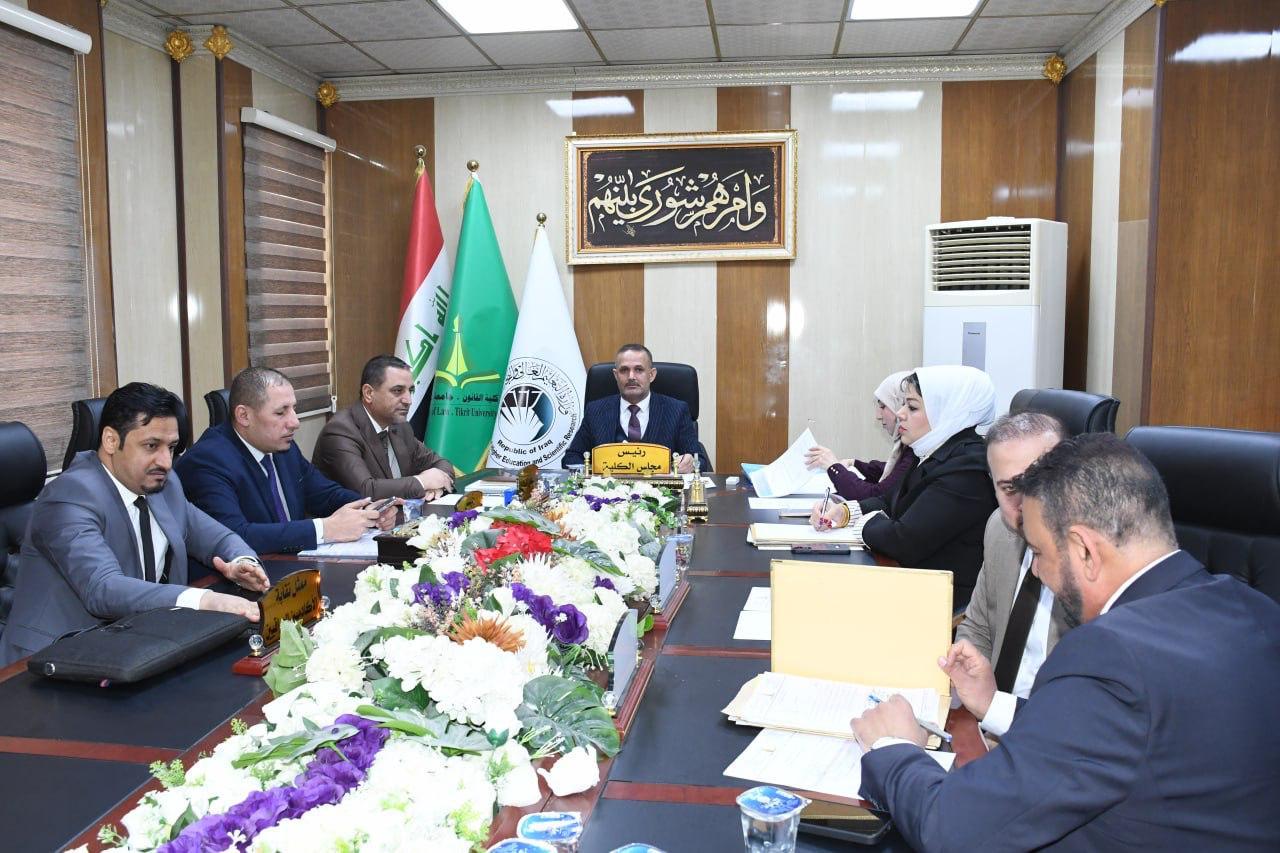 برئاسة السيد عميد الكلية أ.د. نايف احمد ضاحي وبحضور السادة أعضاء المجلس كافة، حيث جرى خلال الجلسة مناقشة عدد من القضايا الأكاديمية والإدارية المدرجة على جدول الأعمال، من أبرزها تقويم أداء العملية التعليمية في ضوء متطلبات نظام بولونيا، والتأكيد على جودة مخرجات التعليم، فضلاً عن مناقشة شؤون الطلبة والدراسات العليا ،كما تم استعراض نسب إنجاز اللجان العلمية، ومتابعة متطلبات الاعتماد المؤسسي والبرامجي، والتأكيد على ضرورة الالتزام بالتوقيتات المحددة لإنجاز المهام الإدارية والعلمية، إلى جانب اتخاذ القرارات اللازمة التي تسهم في تطوير بيئة الكلية وتعزيز رسالتها العلمية، واختُتمت الجلسة بتوجيه السيد العميد شكره للسادة الأعضاء؛ لما أبدوه من ملاحظات قيّمة ومقترحات بنّاءة تخدم مسيرة الكلية وتسهم في الارتقاء بمستوى الأداء الأكاديمي.
