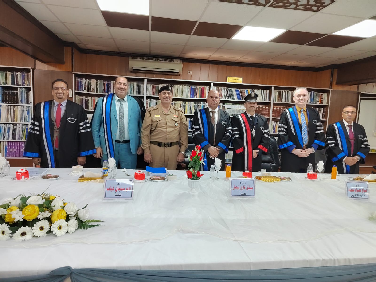 شارك الاستاذ الدكتور صباح مصباح محمود والاستاذ الدكتور ادم سميان ذياب والاستاذ الدكتور محمد صبحي خلف والاستاذ المساعد الدكتور ميثاق غازي فيصل التدريسي على ملاك كليتنا لجنة مناقشة بحث دبلوم عالي في المعهد العالي والموسومة ب "رقابة محكمة التمييز لقوى الأمن الداخلي على تقدير الادلة" للطالب (اراز سعد خضر حسن) .