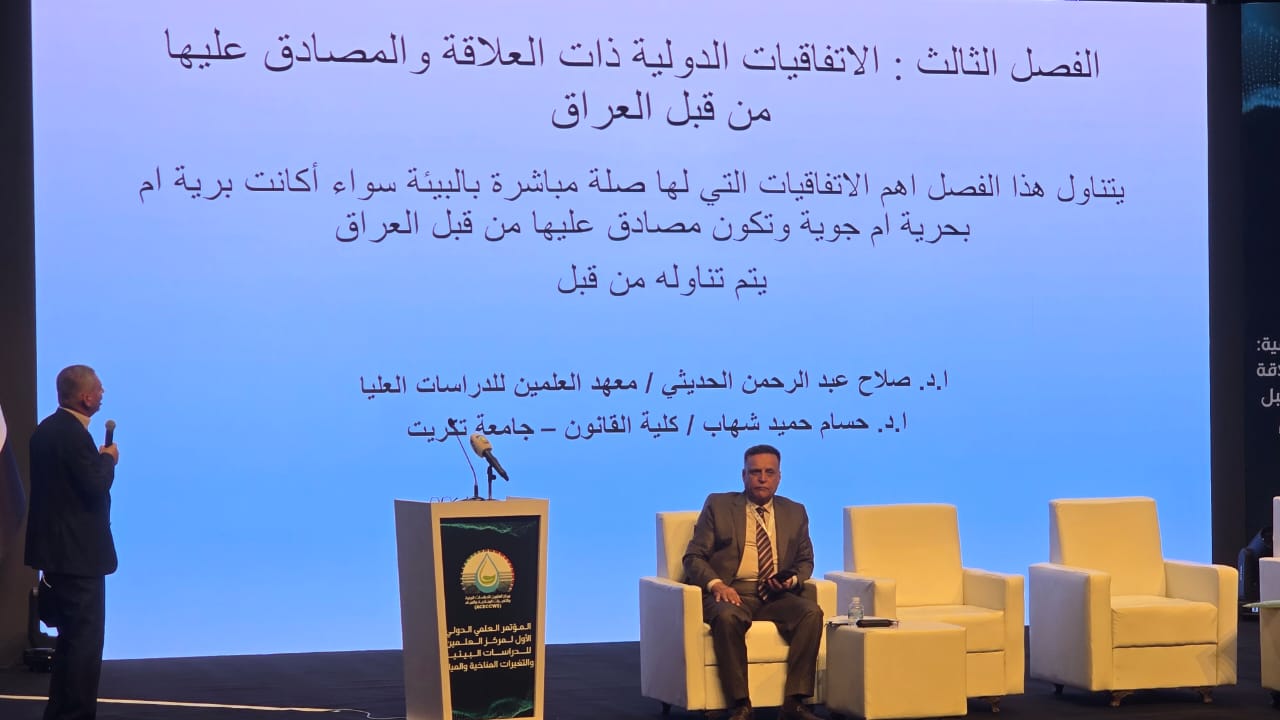 شارك الأستاذ الدكتور حسام حميد شهاب التدريسي على ملاك كليتنا في المؤتمر الدولي لمركز العلمين للدراسات البيئية والتغيرات المناخية والمياه ضمن إطار انشاء الموسوعة البيئية ضمن محور الاتفاقيات الدولية ذات العلاقة والمصادق عليها العراق.