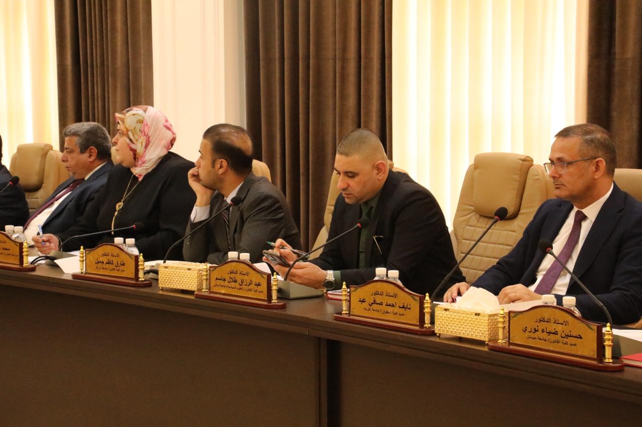 من جانبه افاد السيد عميد الكلية حرص جامعة تكريت وكلية القانون على دعم خطط وزارة التعليم العالي والبحث العلمي وتفعيل البرامج العلمية التي تسهم في تطوير أداء كليات القانون، وبما يعزز جودة المخرجات الأكاديمية والبحثية ويرسخ قيم العدالة وسيادة القانون في المجتمع.