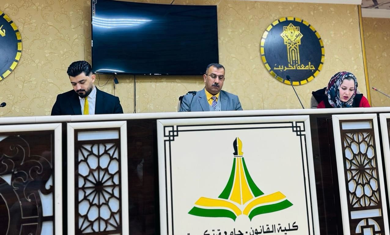 برعاية الاستاذ الدكتور (وعد رؤوف محمود) رئيس جامعة تكريت وبإشراف الاستاذ الدكتور منار عبد المحسن عبد الغني معاون العميد للشؤون العلمية والاستاذ الدكتور سياف عبد حسين مدير مركز التعليم المستمر ، اقيمت صباح يوم الاربعاء الموافق 26/2/2025 دورة علمية حضورية بعنوان"صور الحماية القانونية للمرأة على الصعيد الوطني والدولي" على قاعة الشهيد ضامن العبيدي القاها كل من :