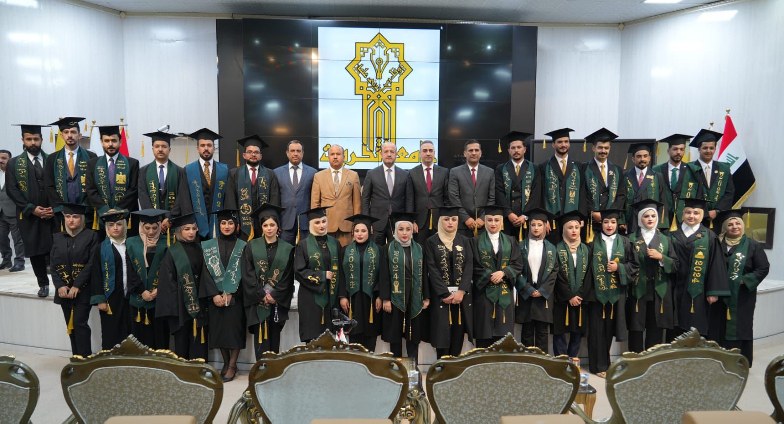 برعاية وحضور الاستاذ الدكتور وعد محمود رؤوف رئيس جامعة تكريت وعميد كلية القانون المخول بسيير وادارة كلية القانون من موقع ادنى احتضنت قاعة الخوارزمي اليوم الخميس الموافق 25/4/2024 حفل تخرج طلبة كلية القانون الدفعة 2023-2024 .