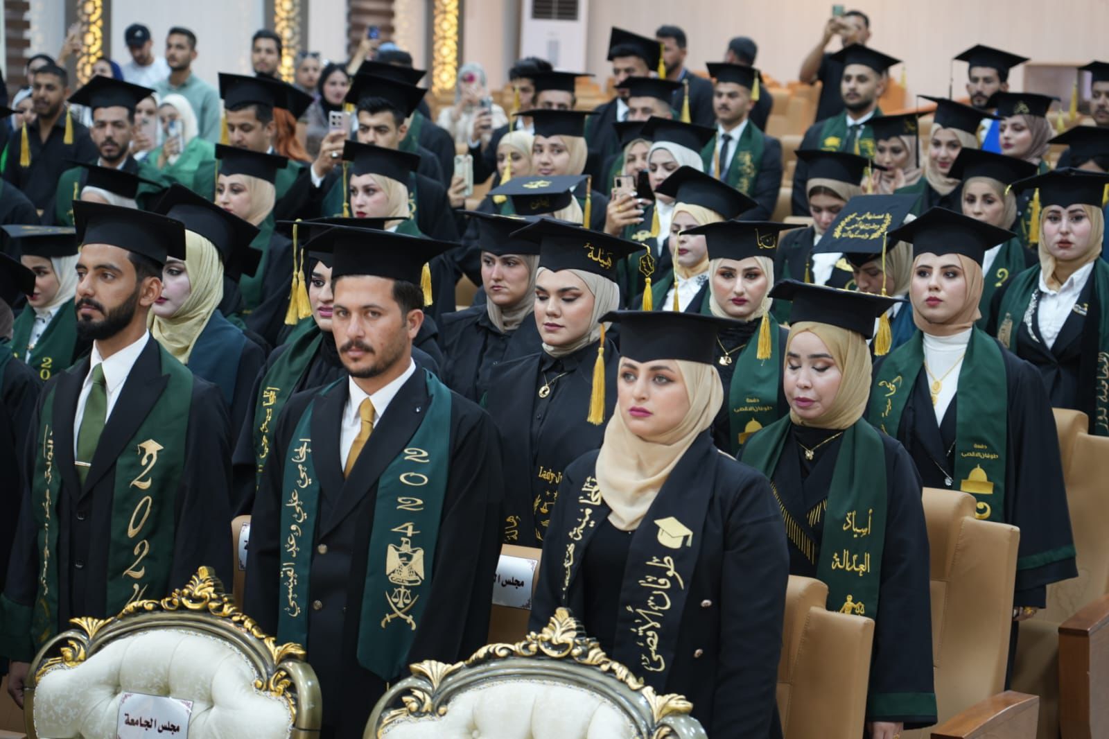 ثم القى ممثل الطلبة كلمة الطلبة الخريجين والتي اثنى فيها على جهود الكلية والجامعة والاساتذة وماقدموه من الدعم الكامل والذي بدوره أدى الى خلق جيل مثقف وقادرٍ على حمل الرسالة وتحقيق غايتها في خدمة المجتمع. بعدها تم عرض فعالية خاصة عن مسيرتهم الدراسية خلال الاربع سنوات الماضية قام الطلبة بعدها بترديد القسم الخاص بالكلية. وللمرأة حضور شعرياً انيق من خلال القصائد الشعرية التي القتها الطالبة الاء