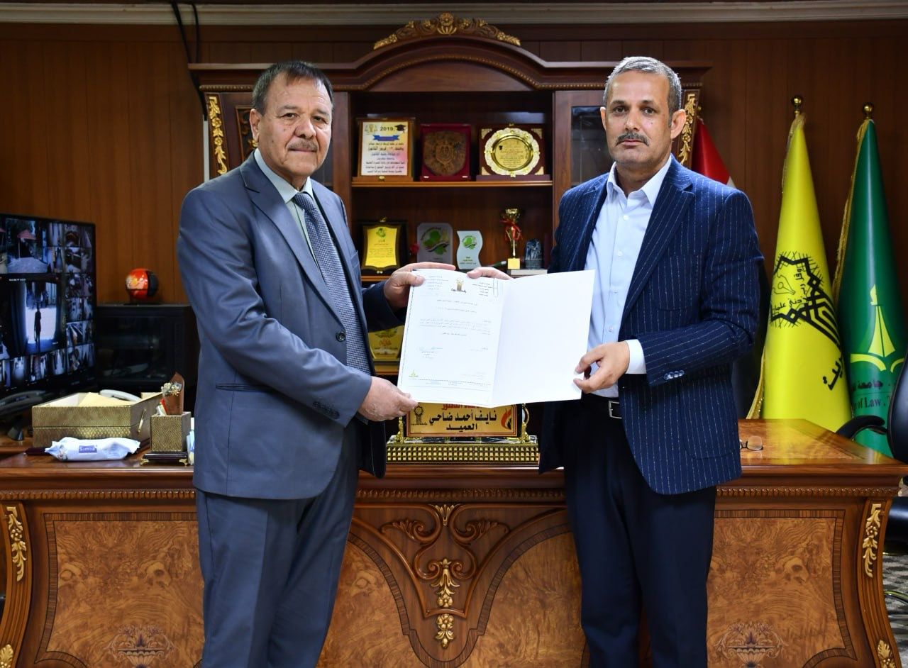 وقد وقع الاتفاقية عن كلية القانون / جامعة تكريت الأستاذ الدكتور نايف احمد ضاحي ، عميد الكلية ، و عن كلية القانون / جامعة النبراس الاهلية الأستاذ الدكتور حسن محمد صالح الحديد