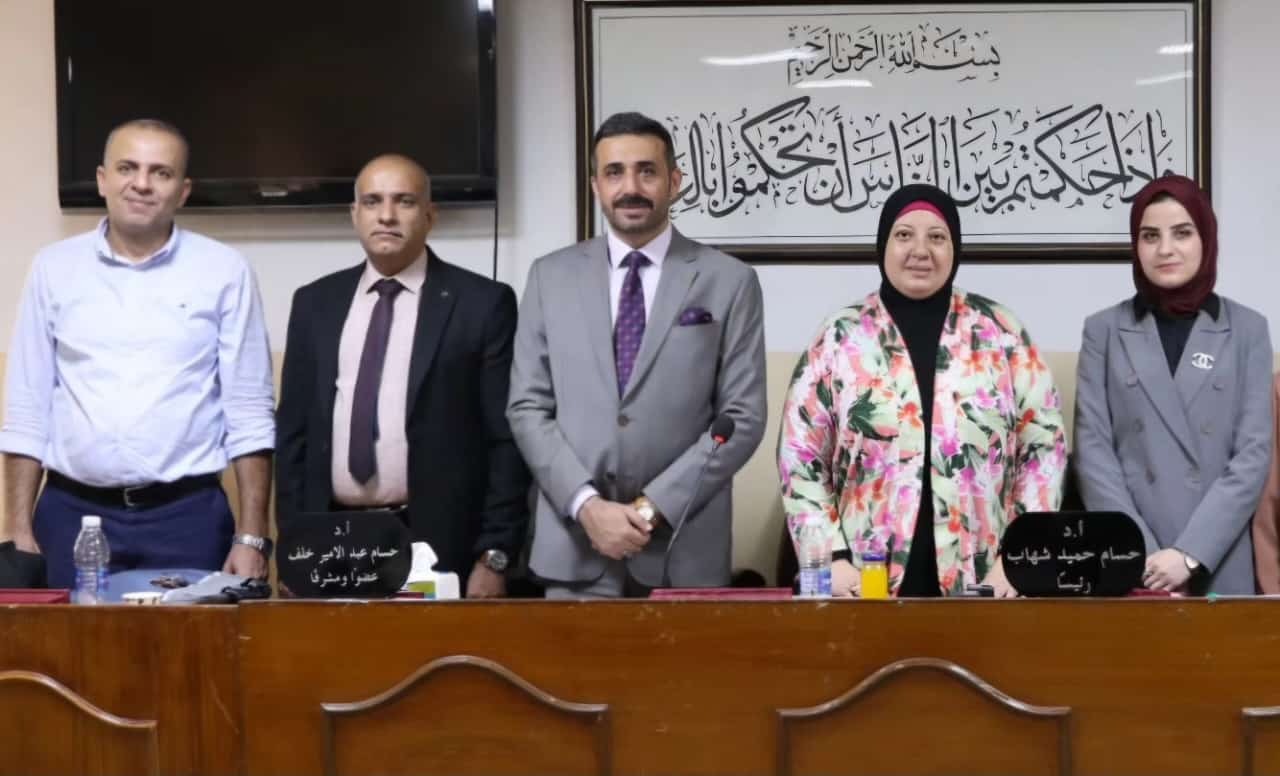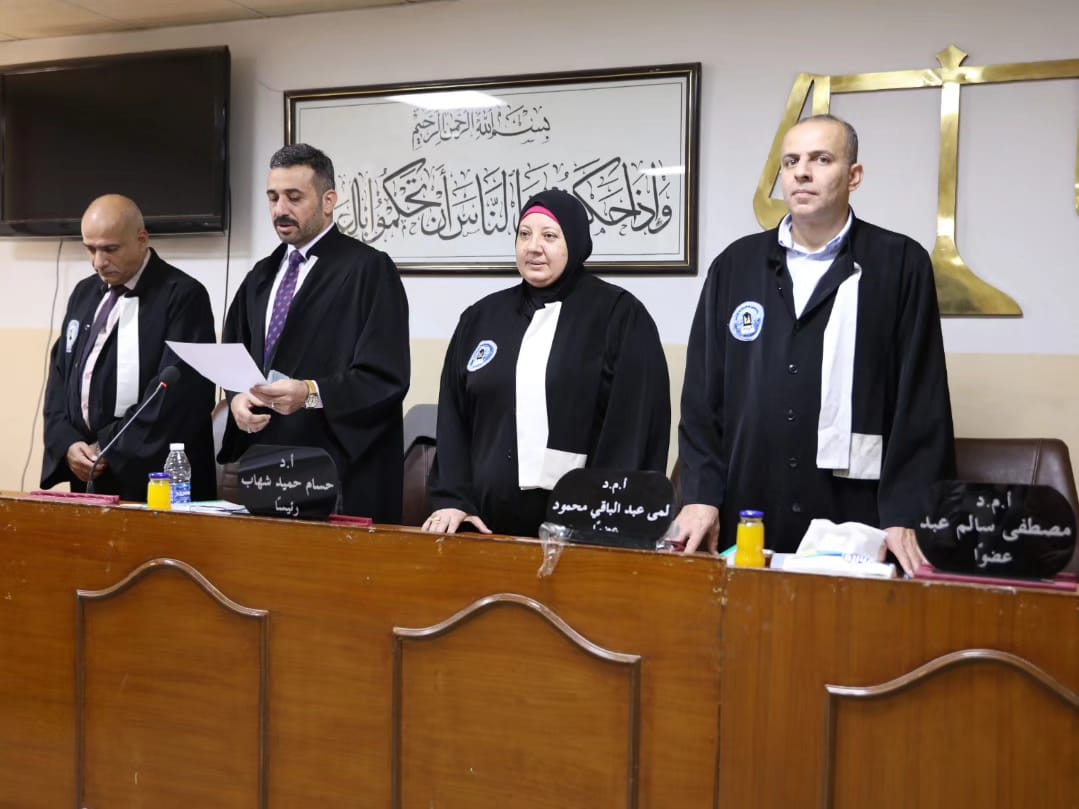 ترأس الاستاذ الدكتور حسام حميد شهاب التدريسي على ملاك كليتنا لجنة مناقشة رسالة ماجستير في كلية القانون بجامعة بغداد والموسومة"الديون البيئية في القانون الدولي العام" للطالبة (غفران مصطفى كامل) صباح يوم الاربعاء الموافق 28-8-2024 .