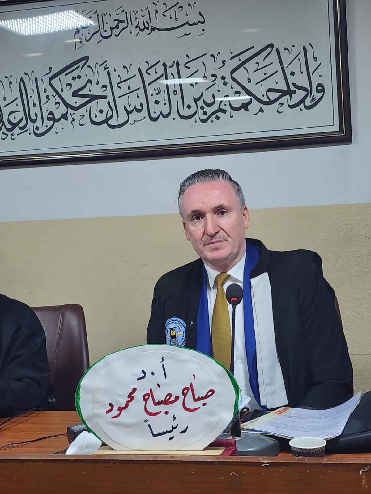 ترأس الاستاذ الدكتور صباح مصباح محمود هذا اليوم الثلاثاء ٢٠٢٥/٧/١ لجنة مناقشة رسالة ماجستير في كلية القانون بجامعة بغداد والموسومة ب ( الحماية الجنائية للبيئة الهوائية/ دراسة مقارنة) وفي نهاية المناقشة تم تكريمه بكتاب شكر وتقدير من السيد عميد الكلية الأستاذ الدكتور علي هادي عطية على جهوده العلمية متمنيا له دوام التواصل خدمة للعلم وطلابه.