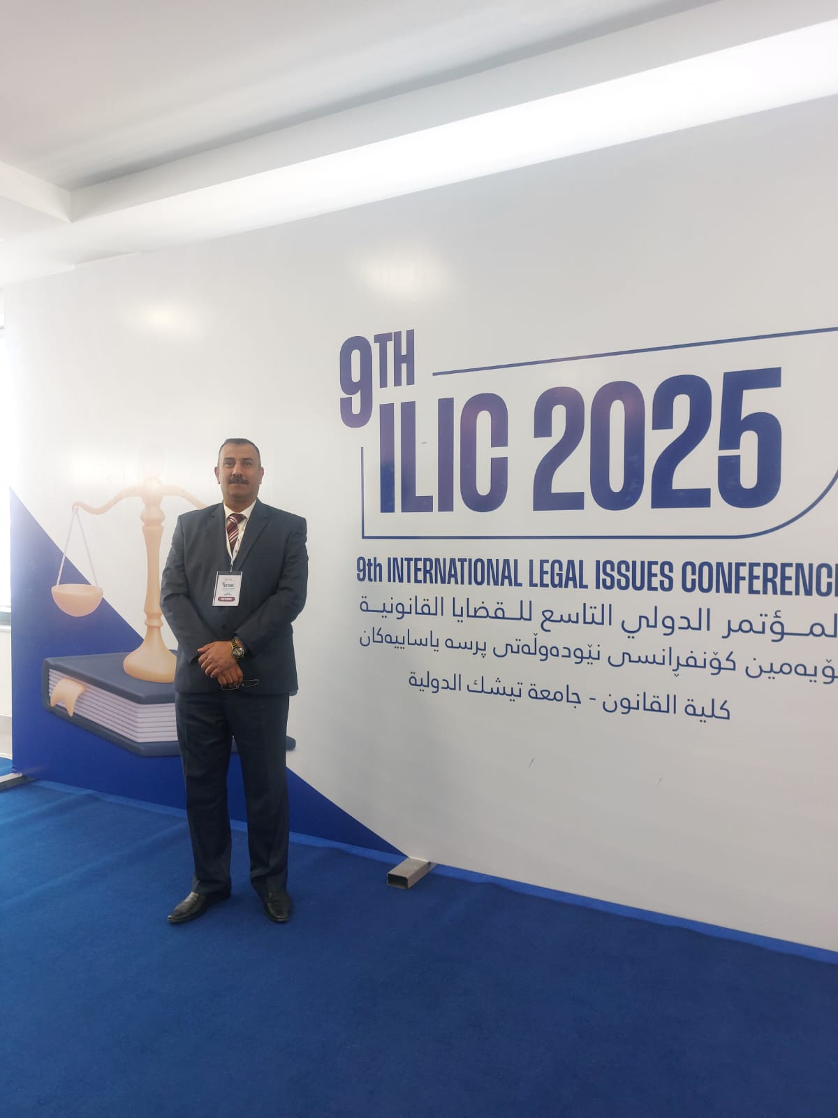 شارك الاستاذ الدكتور عدي طلفاح محمد في المؤتمر الدولي التاسع للقضايا القانونية وكان عنوان البحث "المعالجة الجنائية لفعل انساب طفل زورا لغير والدته" الذي اقامته جامعة تشك الدولية في اربيل ، سائلين المولى عز وجل ان يوفق الجميع بما فيه خيراً للعراق وسموه.