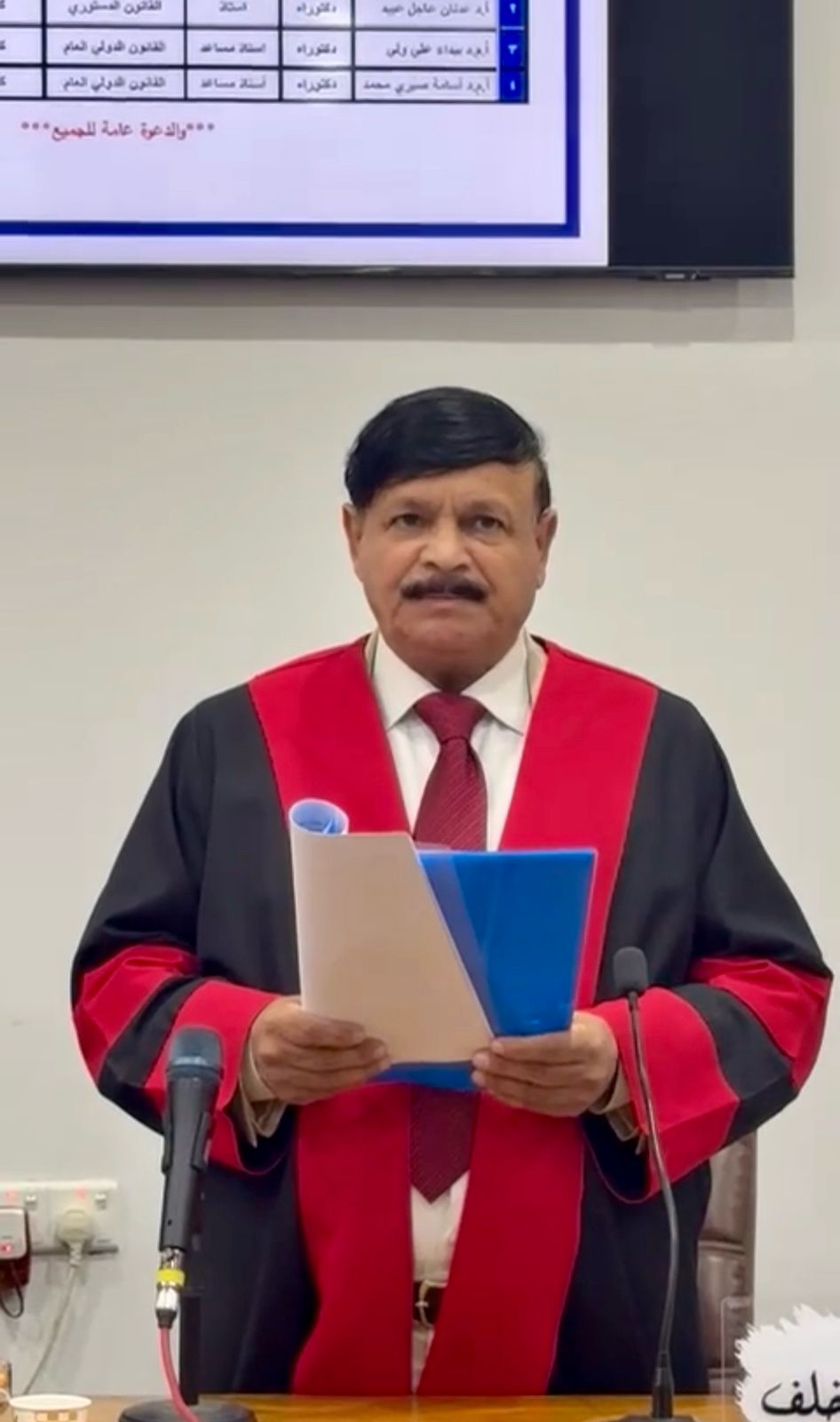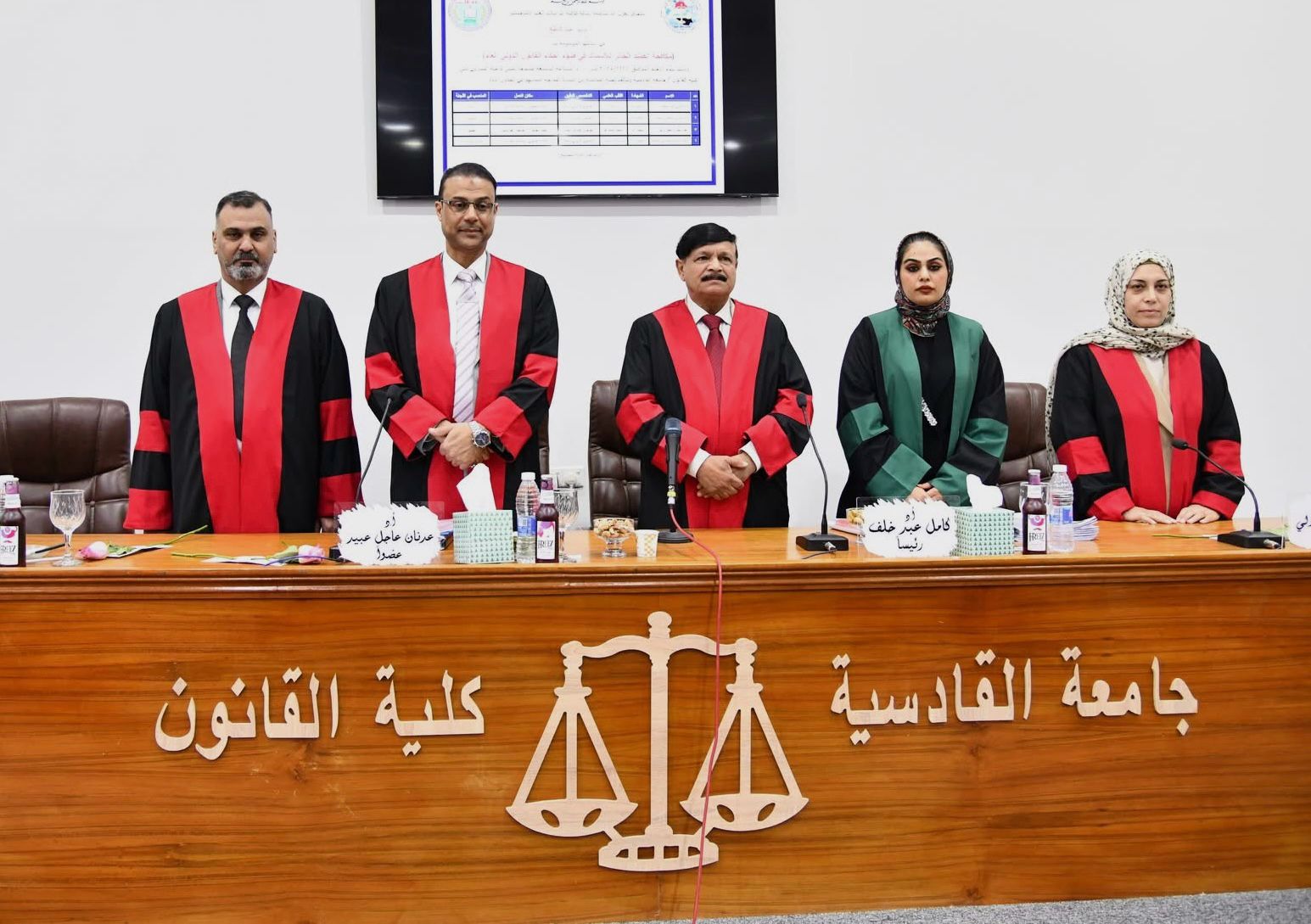شارك الاستاذ المساعد الدكتور كامل عبد خلف العنكود التدريسي على ملاك كليتنا لجنة مناقشة رسالة الماجستير في كلية القانون بجامعة القادسية والموسومة ب "مكافحة الصيد الجائر للأسماك في ضوء أحكام القانون الدولي العام" للطالبة (رملة وليد عبد) صباح يوم الاحد الموافق 6-2-2025.