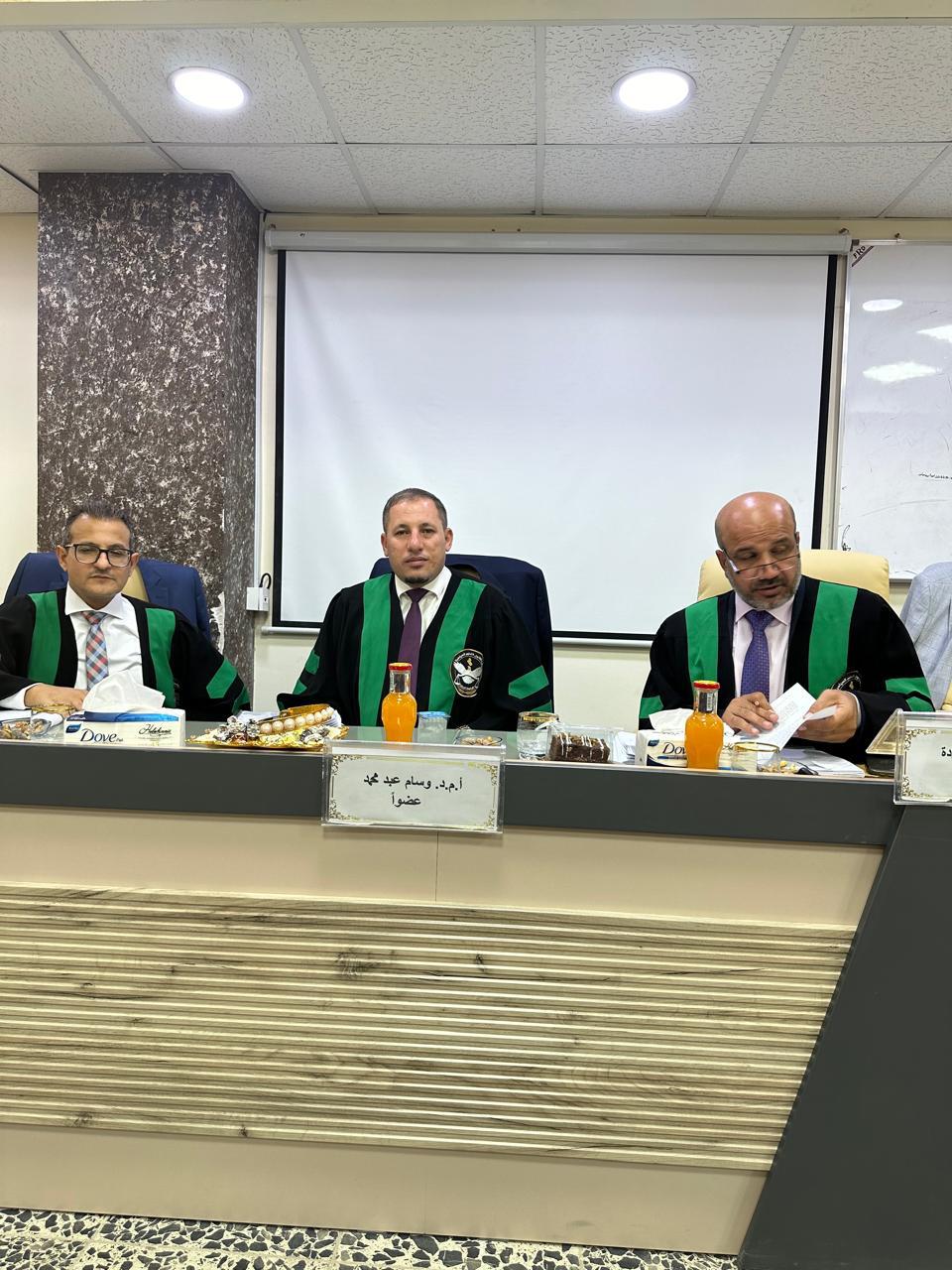 شارك الاستاذ المساعد الدكتور وسام عبد محمد التدريسي على ملاك كلية القانون بجامعة تكريت في عضوية لجنة مناقشة رسالة ماجستير في كلية القانون والعلوم السياسية بالجامعة العراقية والموسومة ب "حق الانتقال في الاراضي الاميرية - دراسة مقارنة " للطالب (فراس علي مهدي) صباح يوم الثلاثاء الموافق 10-9-2024 .