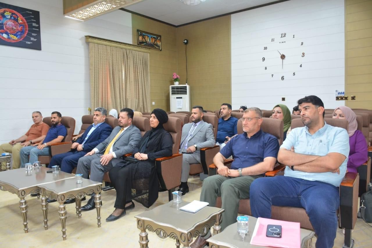في الندوة المقامة من قبل مركز التعليم المستمر بالتعاون مع شعبة السلامة والامن الكيميائي والبايولوجي والاشعاعي في رئاسة الجامعة وجهاز الامن الوطني العراقي وكلية العلوم دورة بعنوان (التداول الامن للمواد الكيميائية والبايولوجية والاشعاعية ذات الاستخدام المزدوج)