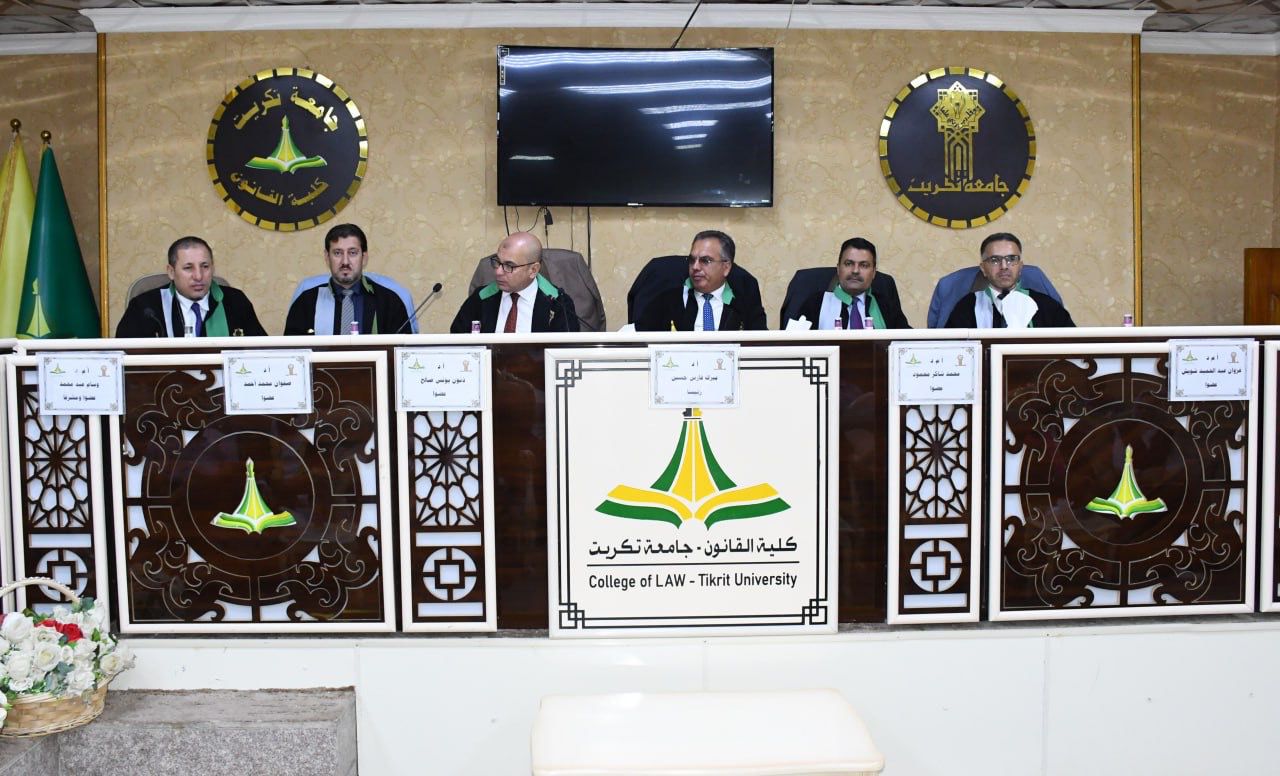 نوقشت في كلية القانون - جامعة تكريت اطروحة دكتوراه في القانون المدني الخاص للطالب (قحطان عبود حسن) والموسومة ب ( الضمانات الموضوعية في بيع العقار - دراسة مقارنة) وذلك على قاعة الشهيد الدكتور ضامن العبيدي في مبنى الكلية صباح يوم الثلاثاء الموافق 22-7-2025