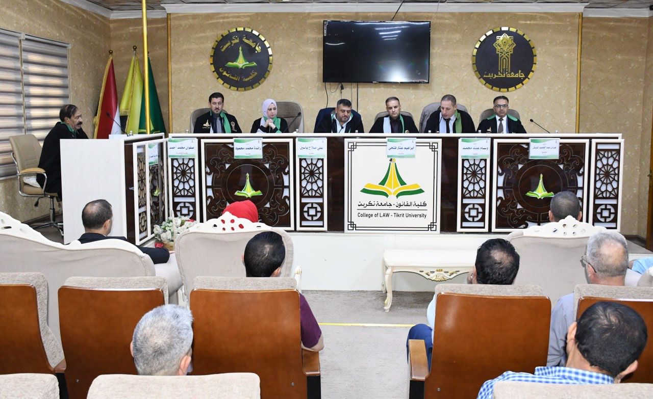 نوقشت في كلية القانون - جامعة تكريت اطروحة دكتوراه في القانون المدني الخاص للطالب (جفال عبدالحميد فزع) والموسومة ب (النظام القانوني لضمان اليد كمصدر للالتزام - دراسة مقارنة) وذلك على قاعة الشهيد الدكتور ضامن العبيدي في مبنى الكلية صباح يوم الثلاثاء الموافق 8-7-2025 ، وكان ملخصها:(يتناول موضوع الدراسة والذي يحمل عنوان (النظام القانوني لضمان اليـــد كمصدر للالتزام، دراسة مقارنة ، فاليد التي ترد على ملك الغير هي إما يد ضمان أو يد أمانة، وما يهمنا وفي هذه الدراسة في يد الضمان، وقد بين الفقه الإسلامي مفهوم وأحكام يد الضمان في حالة يكون الشيء في يد غير مالكه، وقد أخذ المشرع العراقي من الفقه الإسلامي، مخالفاً بذلك التشريعات المقارنة كالتشريع الفرنسي فــي ضمان اليد؛ كما سار سيره في بيانها وأحكامها، مما جعل ضمان اليد موزع بين عدة نظم قانونية متفرقة، فضلاً عن بعض القواعد العامة في الموضوع، وجاء المشرع الأردني والمشرع الإماراتي والمشرع الفرنسي في القانون المدني ببعض ما جاء به المشرع العراقي ويقتضي إشباع رغبات الإنسان وحاجاته في أغلب الأحيان، أن يضع يده على ملك غيره للإفادة من غلته أو جني ثماره بشكل مسبوق ودائمي بالنسبة له، وفي أحيانا أخرى يكون وضع اليد للضمان عرضياً، أو على سبيل الحفظ أو لمآرب شتى في نفس غير واضع اليد، ويمكن القول أن جل الأموال المملوكة قد تكون تحت يد غير المالك، ففي تلك الحالة ندرك أهمية النظام القانوني الذي ينبغي وضعه في تلك الحالة للتوفيق بين حق المالك بملكه، وحق الغير الذي وضع هذا الملك تحت يده.أما الأسباب المنشئة لضمان اليد وردت في الفقه الإسلامي والقوانين الوضعية فهي عند الفقه الإسلامي المصدر المنظم لضمان اليد ضمن مواضيع مختلفة، فلعل وضع اليد على ملك الغير لا يكون إلا بوجود عقد مبرم بين طرفين - المالك والغير -كعقد الإيجار، وعقد الوديعة، وعقد العارية، وعقد الرهن الحيازي، كذلك عقد البيع وقد يكون بإرادة منفردة من قبل صاحب اليد المشروعة وغير المشروعة، كاللقطة والأمانة الصرفة والغصب والسرقة).