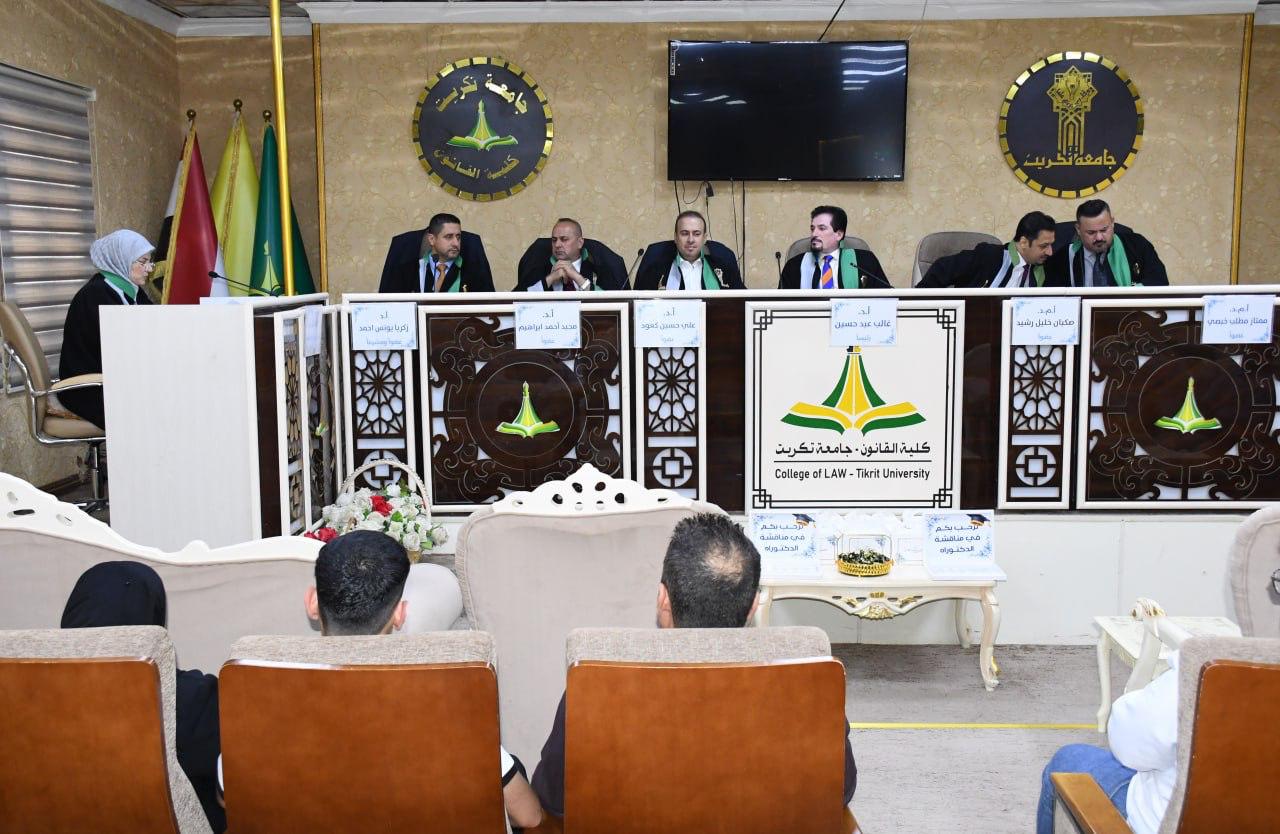 نوقشت في كلية القانون - جامعة تكريت اطروحة دكتوراه في القانون الخاص للطالب (أسين فرحان جاسم) والموسومة ب ( التنظيم القانوني للحساب المصرفي متعدد الأطراف- دراسة مقارنة) وذلك على قاعة الشهيد الدكتور ضامن العبيدي في مبنى الكلية صباح يوم الاثنين الموافق 28-7-2025