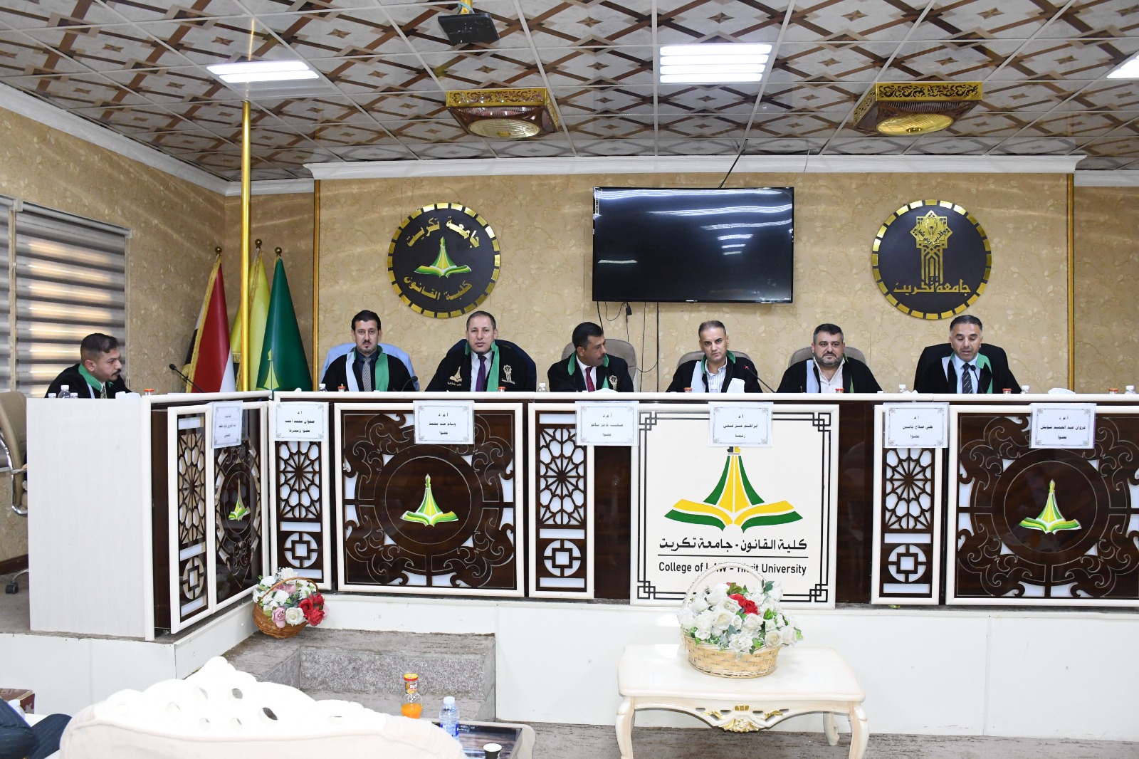 نوقشت في كلية القانون - جامعة تكريت اطروحة دكتوراه في القانون المدني الخاص للطالب (عبدالعزيز داود خلف) والموسومة ب ( التنظيم القانوني للتنازل عن عقد المقاولة - دراسه مقارنة) وذلك على قاعة الشهيد الدكتور ضامن العبيدي في مبنى الكلية صباح يوم الاربعاء الموافق 16-7-2025