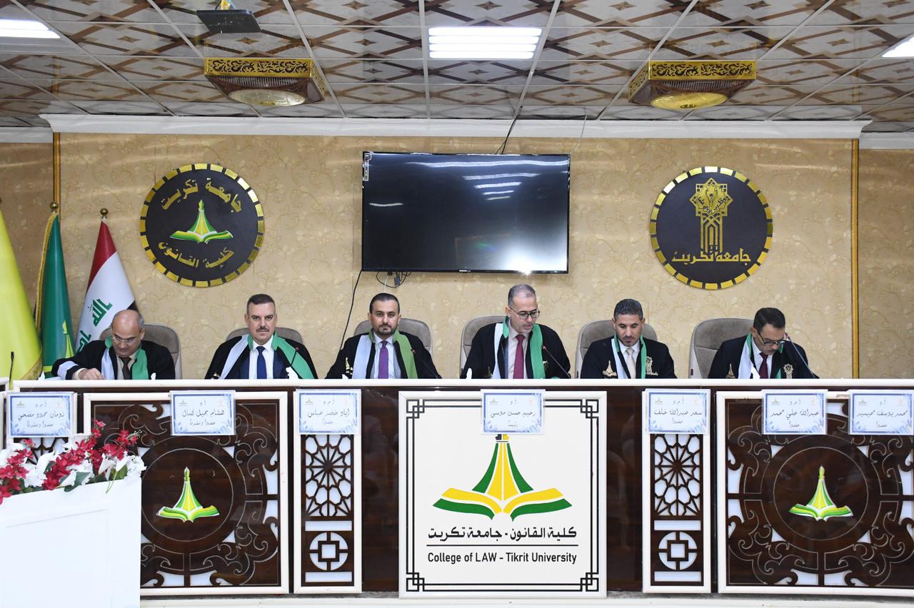 نوقشت في كلية القانون - جامعة تكريت اطروحة دكتوراه في القانون الخاص للطالب (عمران عادل جمعة) والموسومة ب (أشكالية الجمع بين منصب الرئيس والقائد العام للقوات المسلحة - دراسة مقارنة) على قاعة الشهيد الدكتور ضامن العبيدي في مبنى الكلية صباح يوم الاربعاء الموافق 19-11-2025.