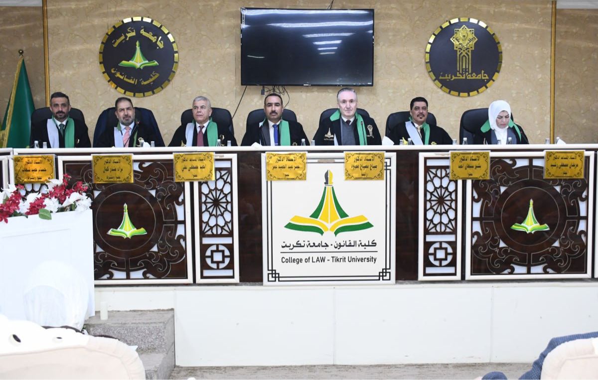نوقشت في كلية القانون - جامعة تكريت أطروحة دكتوراه في القانون العام للطالب (جميل عبدالله عبدالفتاح) والموسومة ب (دور فرق الأمم المتحدة في التحقيق الجرمي) وذلك على قاعة الشهيد الدكتور ضامن العبيدي صباح يوم الثلاثاء الموافق 17-2-2026