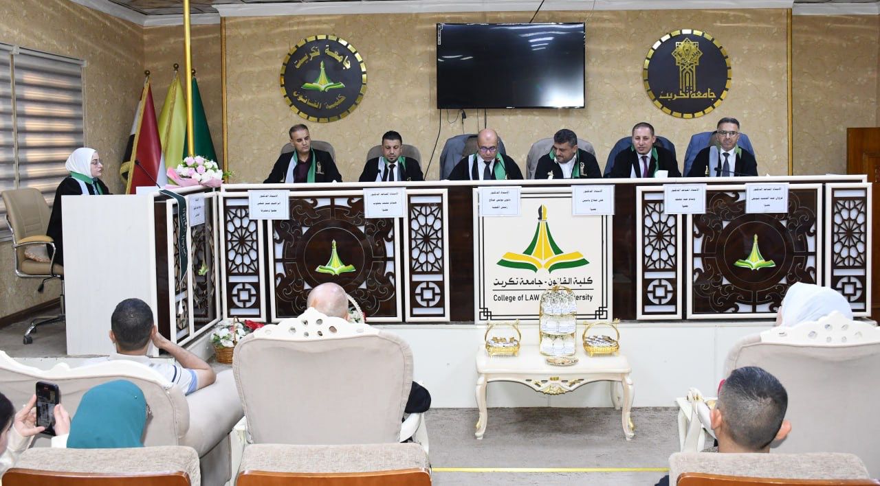 نوقشت في كلية القانون - جامعة تكريت اطروحة دكتوراه في القانون الخاص للطالبة (عدالة عبدالغني محمود) والموسومة ب (فاعلية اكتمال النص المدني في نظرية العقد - دراسة مقارنة) على قاعة الشهيد الدكتور ضامن العبيدي في مبنى الكلية صباح يوم الاربعاءالموافق 13-8-2025.