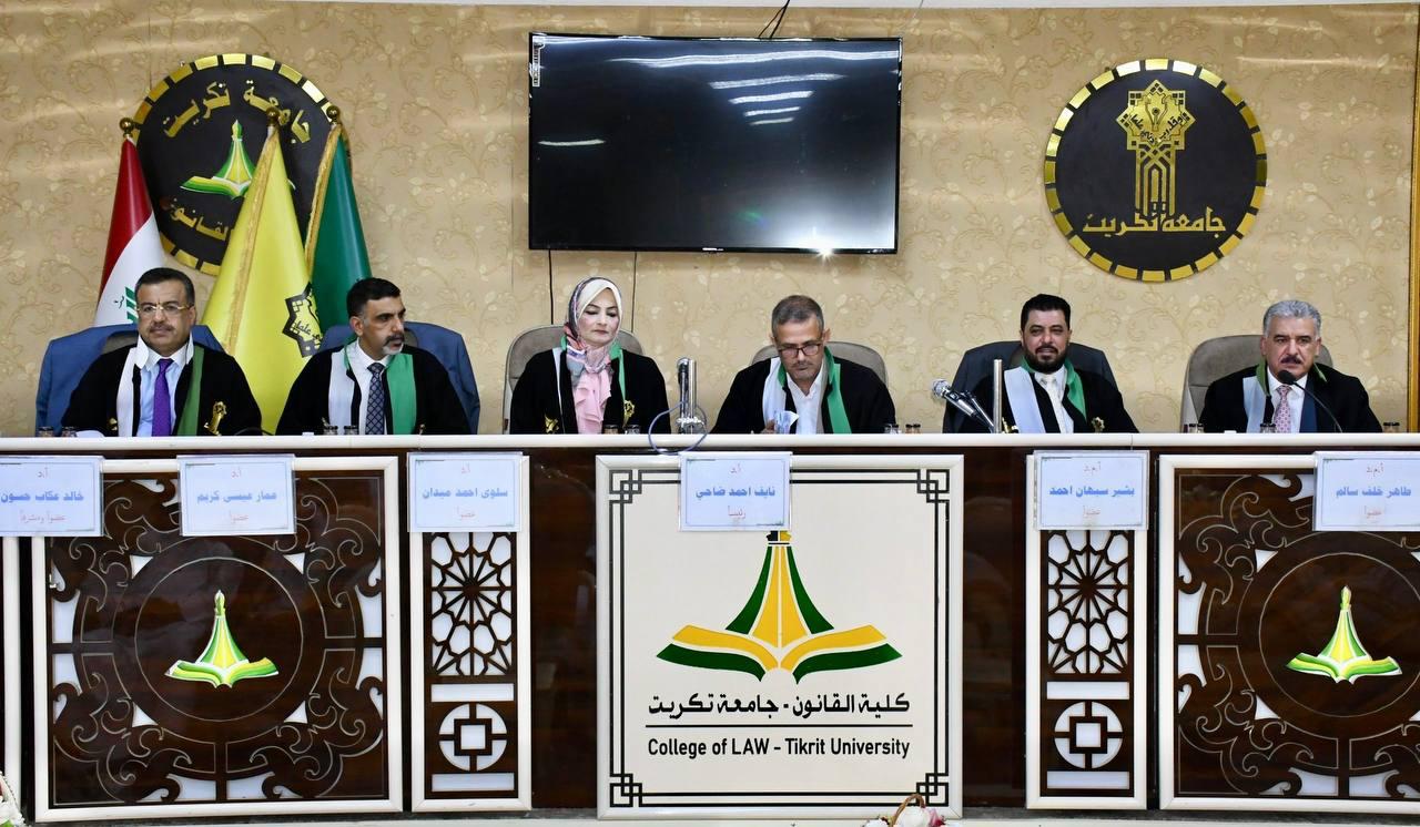 نوقشت في كلية القانون - جامعة تكريت أطروحة دكتوراه في القانون الدولي العام للطالب ( احمد خضير صالح ) والموسومة ب (التفاوت في الالتزام بقواعد القانون الدولي العام) على قاعة الشهيد الدكتور ضامن العبيدي في مبنى الكلية صباح يوم الخميس الموافق 1-8-2024.