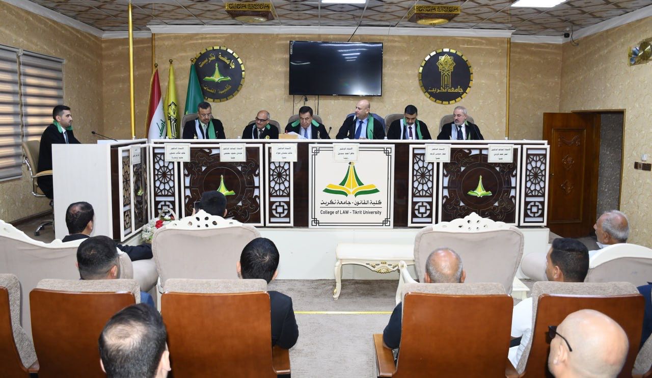 نوقشت في كلية القانون - جامعة تكريت اطروحة دكتوراه في القانون الدولي العام للطالب (عمر عباس خضير ) والموسومة ب ( انتهاكات الحقوق السيادية للعراق في المنطقة الاقتصادية الخالصة) وذلك على قاعة الشهيد الدكتور ضامن العبيدي في مبنى الكلية صباح يوم الثلاثاء الموافق 13-5-2025 ، وكان ملخصها:( الدولة الساحلية هي الدولة التي تتمتع بإطلالة على البحر، بصرف النظر عن طول امتداد سواحلها ومدى حقوقها على البحر، وقد تكون ذات سواحل متقابلة أي تتقابل دولتان في بحر معين وتتداخل مناطقها الاقتصادية الخالصة أو حروفهما القارية، أو قد تكون ذات سواحل متلاصفة أي تكون الدولتان متجاورتين متى ما كانت لهما حدود مشتركة، بينما الدولة غير الساحلية هي دولة محاطة باليابسة بالكامل، أو هي تلك الدول التي تقع سواحلها الوحيدة على البحار المغلقةمن أجل الضمان الحقيقي لحماية حقوق الدولة الساحلية من الانتهاكات على مواردها الطبيعية الحية منها وغير الحية الموجودة خلف منطقة البحر الإقليمي، فان القانون الدولي ذهب إلى إنشاء المنطقة الاقتصادية الخالصة كامتداد بحري جديد من أجل التوافق بين الأخذ بنظر الاعتبار حقوق الدولة الساحلية في هذه المنطقة وبين مطالب حرية الملاحة الدولية، لذلك لم يكن تقنين هذه المنطقة مستنداً إلى عرف دولي سائد أو سلوك دولي مضطرد على غرار المنطقة المتاخمة، وإنما يرجع الفضل في نشأتها إلى روح القانون الدولي التي يقبل التطور والتأقلم مع احتياجات الجماعة الدولية.بانت المنطقة الاقتصادية الخالصة أهم المناطق البحرية خاصة في ظل التغيرات والتطورات الجمة التي جعلتها ليس فقط مناطق للصيد واستخراج الموارد الطبيعية، بل مسرحاً كبيراً تتبادل فيه الدول الساحلية المتقدمة أدواراً جديدة لاستمرار بقائها كقوة اقتصادية عظمى، محاولاً بذلك جذب انتباه الدول الساحلية النامية إلى أهمية المنطقة الاقتصادية الخالصة في تنمية الشعوب بعد أن وفرت اتفاقية الأمم المتحدة لقانون البحار لعام ۱۹۸۲ إطاراً جديداً لإدارة أفضل مصادر الثروات البحرية، وكفلت للدول الساحلية حقوقاً ومسؤوليات بشأن إدارة مصايد الثروة السمكية والموارد الحية داخل المناطق الخاضعة لولايتها الوطنية، والتي تشكل حوالى 40 % من الثروة السمكية في العالم، كما أعطت الاتفاقية للدول الساحلية الحق في حماية المنطقة الاقتصادية الخالصة من التلوث وتطوير البحث العلمي فيها للاستخدام والاستغلال الأمثل للموارد الحية وغير الحية، وسد العجز الذي تعانيه أغلب الدول النامية في الطاقة بالبحث عن موارد نفطية جديدة في بحارها بوجه عام والمنطقة الاقتصادية بوجه خاص، وأيضاً بالاستثمار في توليد الطاقة الكهربائية من طاقة الأمواج وتوربينات الرياح في البحار.لم يحصل العراق على الحقوق التي أقرتها اتفاقية الأمم المتحدة لقانون البحار لعام ١٩٨٢ أسوة بباقي الدول الساحلية، بل أنه لم يحصل على الحقوق في المناطق البحرية التابعة له نتيجة النزاعات التي رافقت مسيرته مع الدول المجاورة وعدم التوافق مع الدول المجاورة، وكذلك صدور قرارات مجلس الأمن التي أضرت كثيراً حقوق العراق السيادية في مناطقه البحرية وضاعت وذهبت إلى دول الجوار بحجة الخطر والنزاع وغير ذلك من الأعذار التي أوصلت العراق بالنهاية إلى ضياع حقوقه، وهذا ما يعد خرقاً لمبدأ حسن الجوار وقاعدة الإنصاف والحق التاريخي للعراق في الملاحة والحدود والصيد. إذ انتهكت اللجنة التي شكلها مجلس الأمن صلاحياتها وأقرت لنفسها حق وضع الحدود البحرية التي لم يتم تحديدها في أي اتفاقية حدودية مسابقة بين الدولتين، على عكس الحدود البرية التي كانت هنالك اتفاقيات سابقة بشأنها ومنها محضر عام ١٩٦٣ بين العراق والكويت.