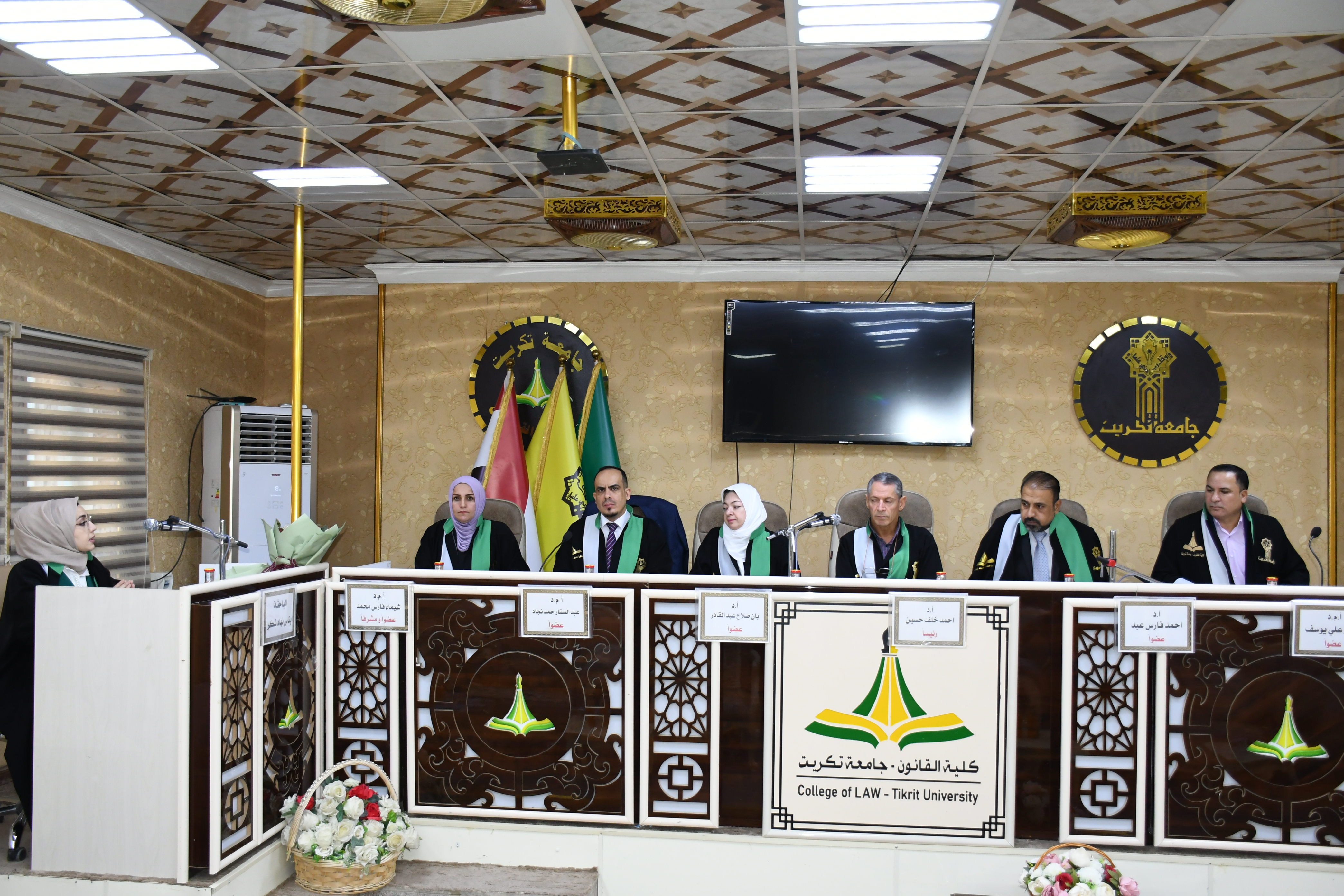 نوقشت في كلية القانون - جامعة تكريت أطروحة دكتوراه في القانون العام للطالبة (ايناس نهاد شكر) والموسومة ب (رقابة ديوان الرقابة المالية الاتحادي على النفقات والايرادات العامة) على قاعة الشهيد الدكتور ضامن العبيدي في مبنى الكلية صباح يوم الخميس الموافق 26-9-2024.