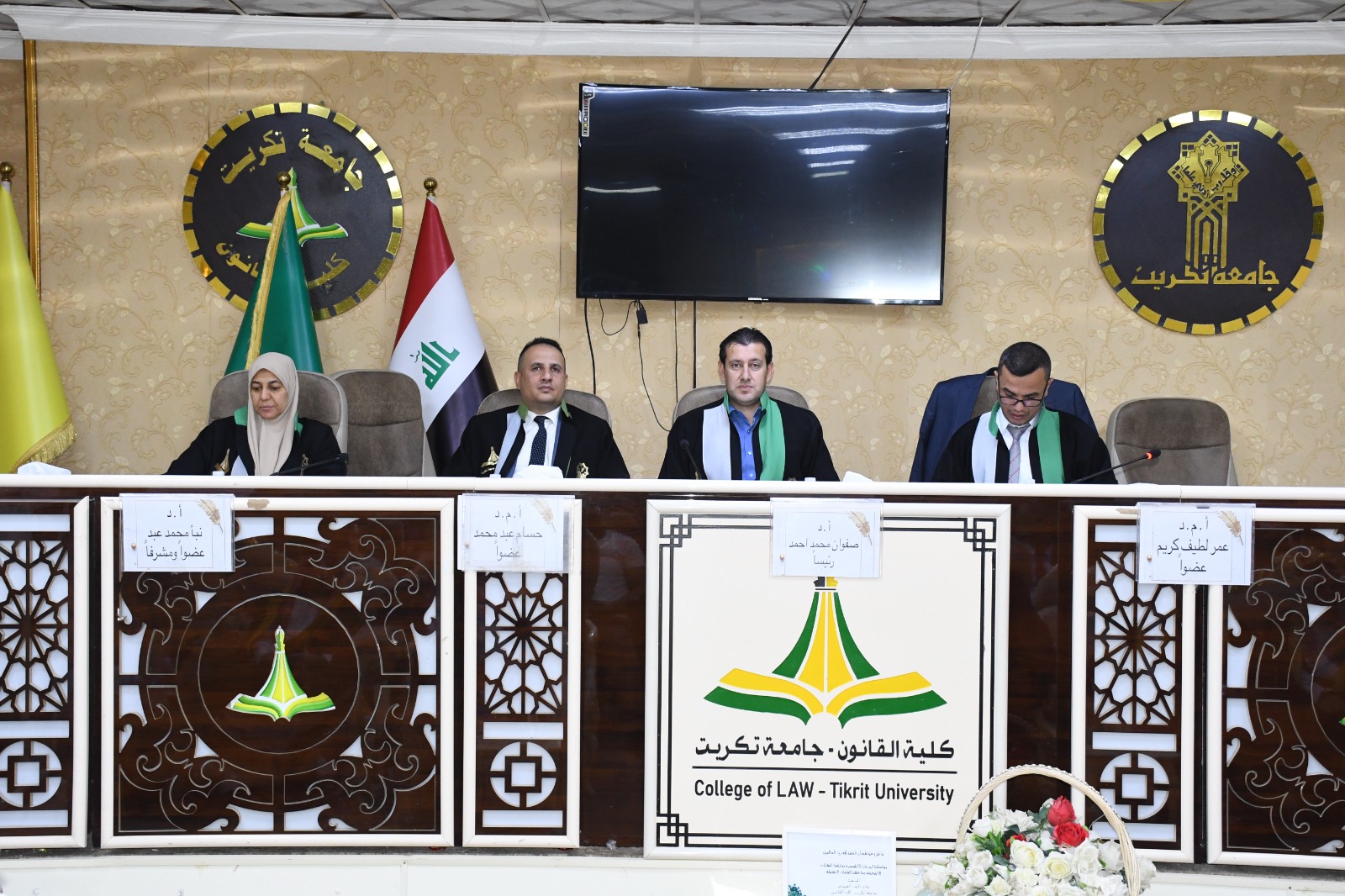 نوقشت في كلية القانون - جامعة تكريت رسالة ماجستير في القانون العام للطالب (غانم نايف مطن) والموسومة ب (مبدأ القوة الملزمة للعقد - دراسة مقارنة) وذلك على قاعة الشهيد الدكتور ضامن العبيدي صباح يوم الاربعاء الموافق 10-9-2025.