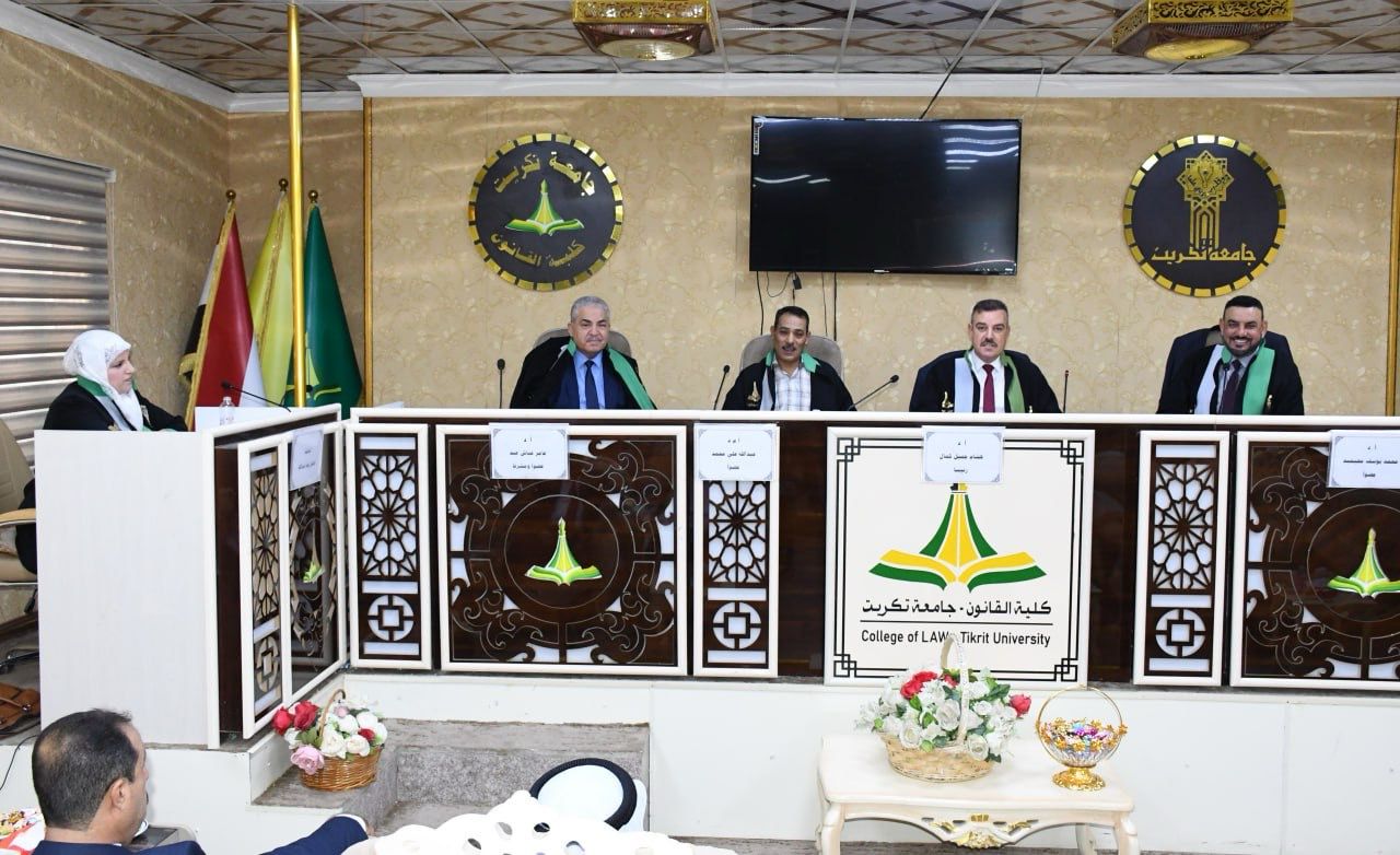 نوقشت في كلية القانون - جامعة تكريت رسالة ماجستير في القانون الدستوري للطالبة (اغصان نجم عبدالله) والموسومة ب (الاثر السياسي لقرارات المحكمة الاتحادية العليا في العراق) وذلك على قاعة الشهيد الدكتور ضامن العبيدي في مبنى الكلية صباح يوم الاحد الموافق 27-7-2025.