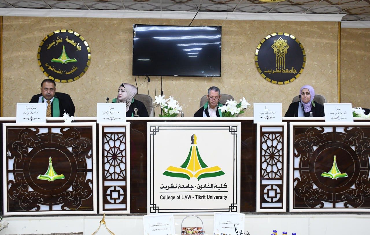 نوقشت في كلية القانون - جامعة تكريت رسالة ماجستير في قانون العمل للطالبة (حنين فيصل عبدالله العجيلي) والموسومة ب (الحماية القانونية لعمالة الأحداث من الاستغلال الاقتصادي في القانون العراقي في الماجستير العام- قانون العمل) وذلك على قاعة الشهيد الدكتور ضامن العبيدي في مبنى الكلية صباح يوم الخميس الموافق 17-7-2025.