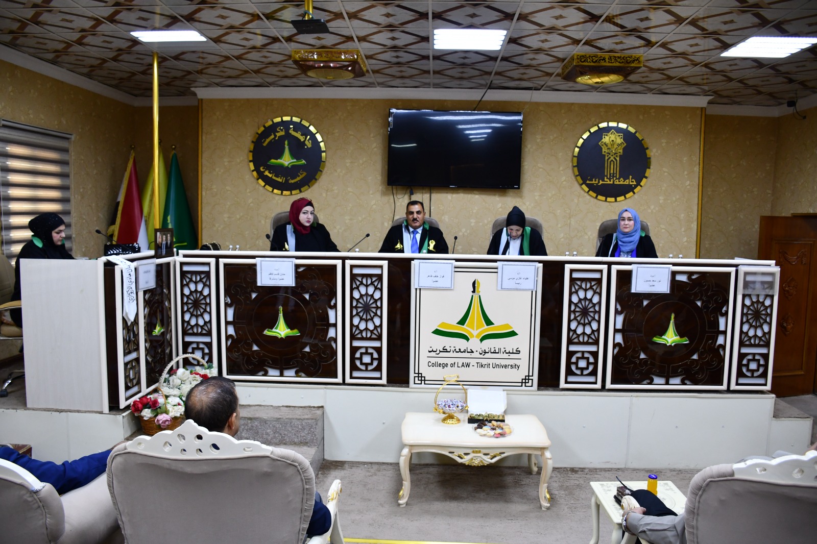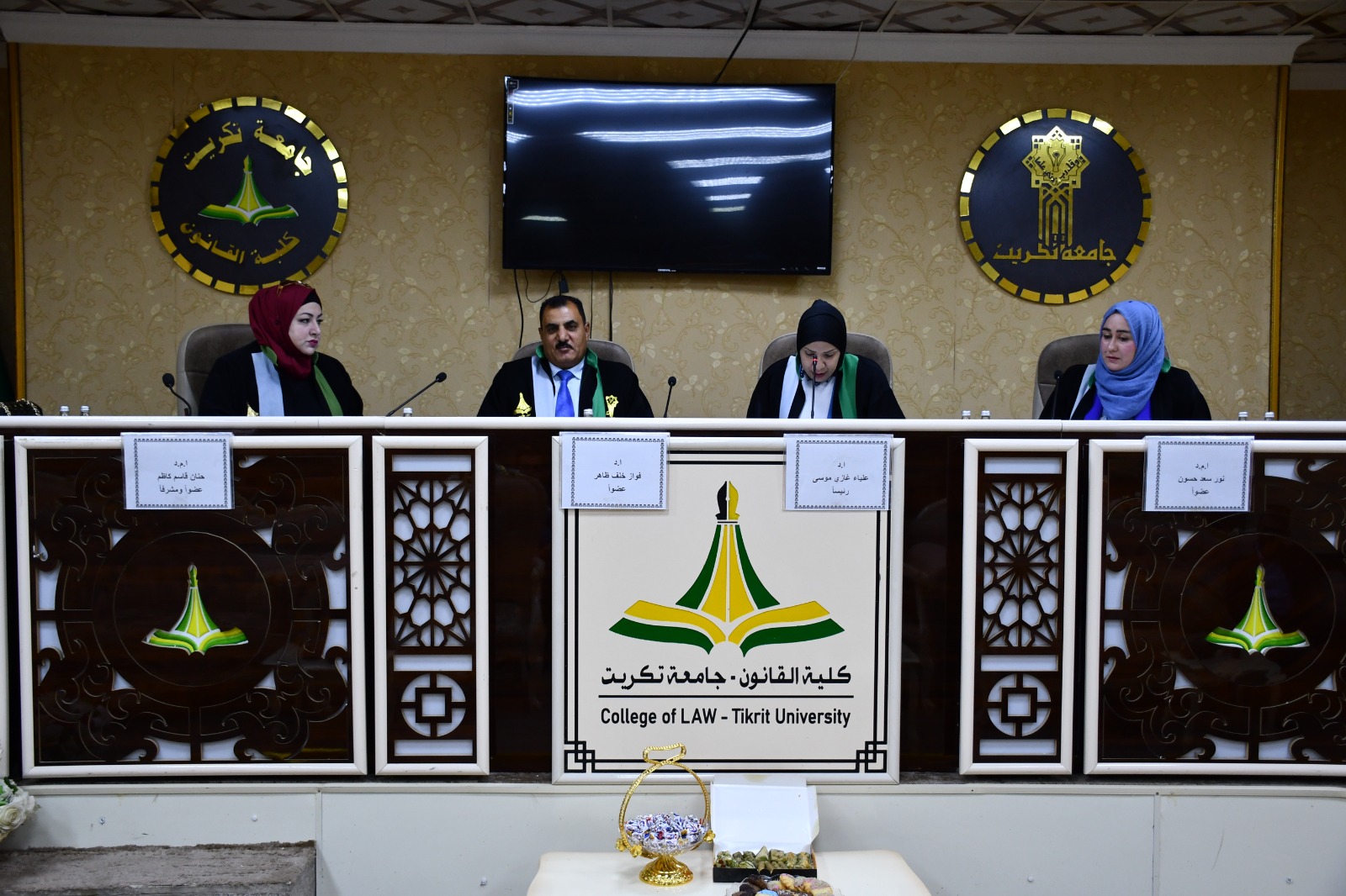 نوقشت في كلية القانون - جامعة تكريت رسالة ماجستير في قانون العمل للطالبة (ايمان هادي دوس) والموسومة ب (الحماية القانونية للحق في الخصوصية للعامل في عقد العمل عن بعد) وذلك على قاعة الشهيد الدكتور ضامن العبيدي في مبنى الكلية صباح يوم الخميس الموافق 23-7-2025.
