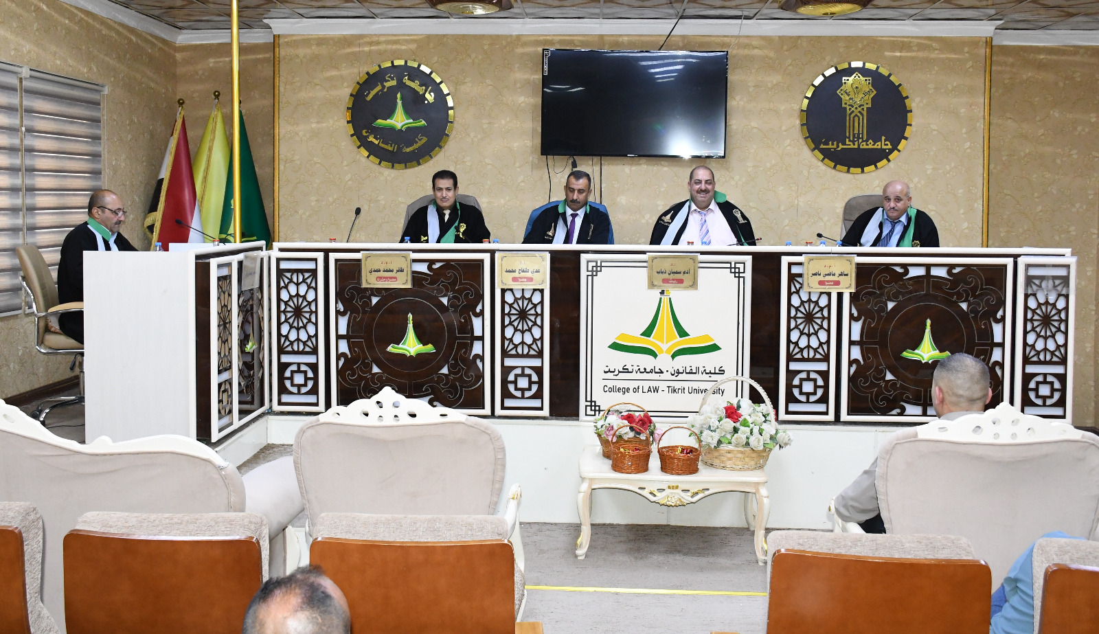 نوقشت في كلية القانون - جامعة تكريت رسالة ماجستير في قانون العمل للطالب (ثائر صبر عبدالرزاق) والموسومة ب (اصرار محكمة الموضوع على قراراتها واحكامها المنقوضة - دراسة مقارنة) وذلك على قاعة الشهيد الدكتور ضامن العبيدي في مبنى الكلية صباح يوم الثلاثاء الموافق 29-7-2025.