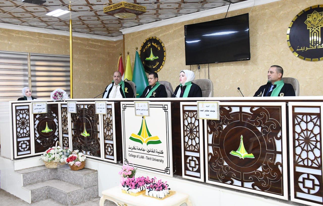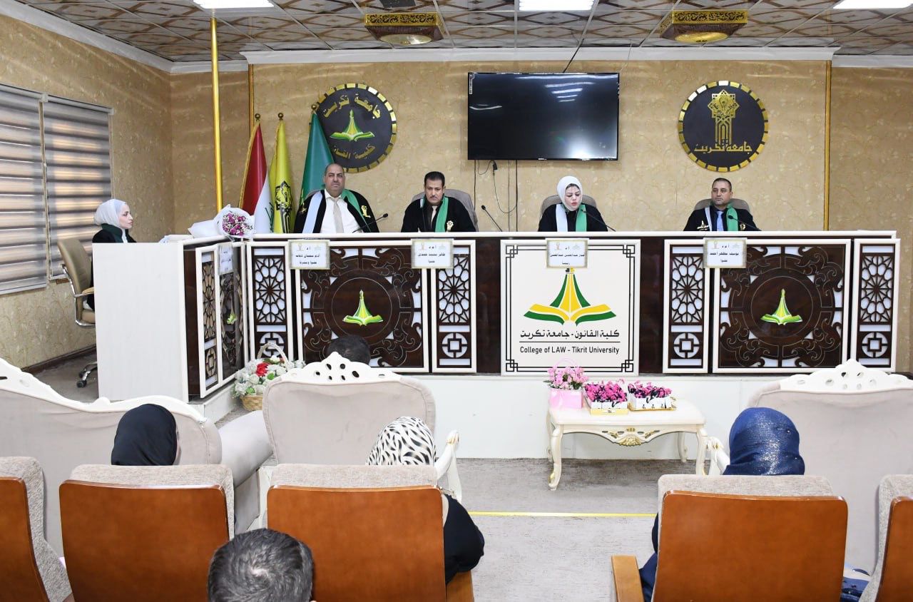 نوقشت في كلية القانون - جامعة تكريت رسالة ماجستير للطالبة ( انفال باسم هادي ) والموسومة ب ( دور الرضا في الجرائم الواقعة على الاخلاق ) وذلك على قاعة الشهيد الدكتور ضامن العبيدي صباح يوم الخميس الموافق 3-7-2025