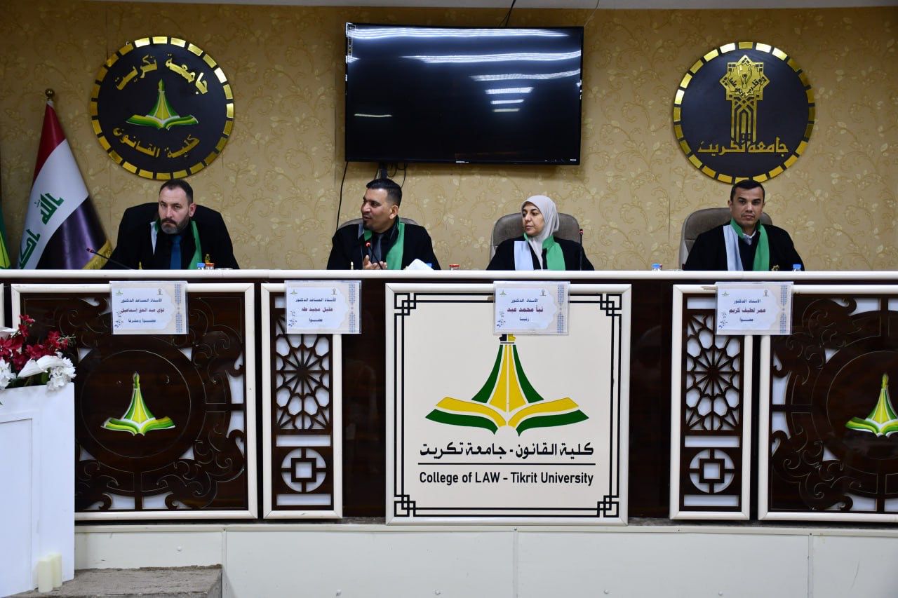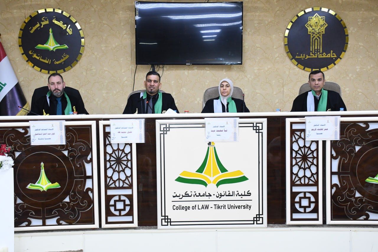 نوقشت في كلية القانون - جامعة تكريت رسالة ماجستير في القانون الخاص للطالب (ضياء اركان عداي) والموسومة ب (فعالية القياس في القواعد الإجرائية المدنية - دراسة مقارنة) وذلك على قاعة الشهيد الدكتور ضامن العبيدي صباح يوم الاربعاء الموافق 14-1-2026