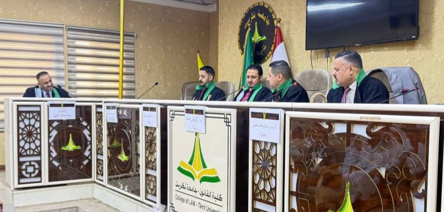 نوقشت في كلية القانون - جامعة تكريت رسالة ماجستير في القانون الخاص للطالب (محمد ستار عليوي حسين) والموسومة ب (حماية الغير حسن النية عند تعامله مع الشركات التجارية في مرحلة نشاطها - دراسة مقارنة) وذلك على قاعة الشهيد الدكتور ضامن العبيدي في مبنى الكلية صباح يوم السبت الموافق 6-9-2025.