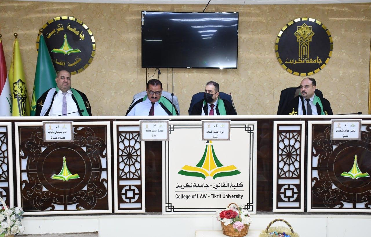 1- أ.د. براء منذر كمال عبداللطيف/ استاذ في القانون الجنائي/ جامعة تكريت- كلية القانون/ رئيساً.