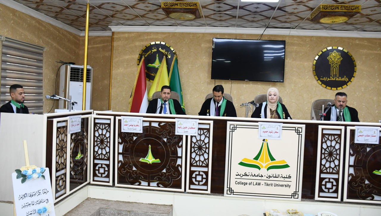 نوقشت في كلية القانون - جامعة تكريت رسالة ماجستير في القانون الخاص للطالب (محمد علي صالح) والموسومة ب (الاكراه الاقتصادي في عقود التجارة الدولية- دراسة مقارنة) وعلى قاعة الشهيد الدكتور ضامن العبيدي صباح يوم الاثنين الموافق 16-9-2024.