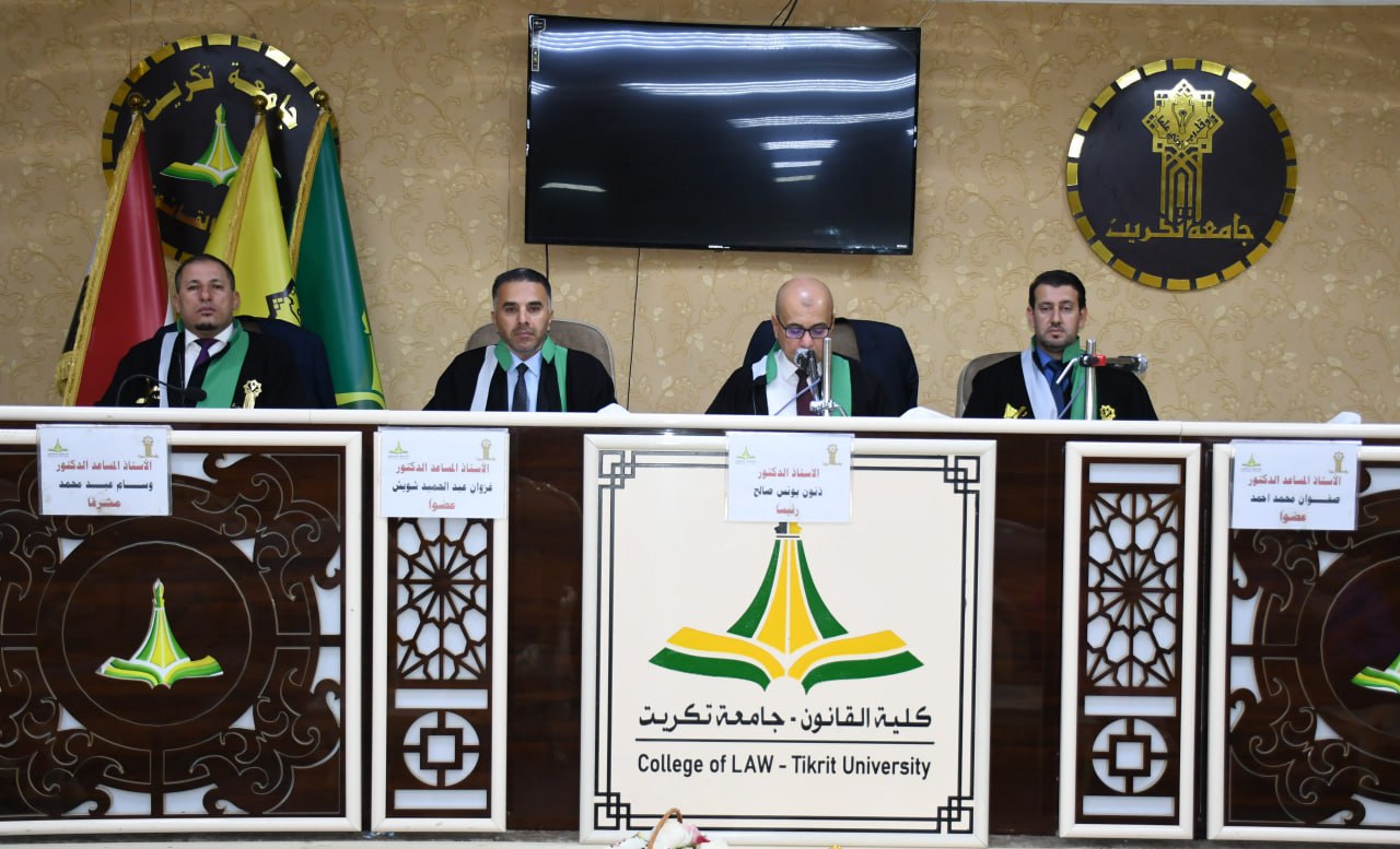 نوقشت في كلية القانون - جامعة تكريت رسالة ماجستير في القانون الخاص للطالب (ثامر محمد اسماعيل ) والموسومة ب (الضرر الناشئ عن الاختراق الالكتروني- دراسة مقارنة. ) وعلى قاعة الشهيد الدكتور ضامن العبيدي في مبنى الكلية صباح يوم الاثنين الموافق 9-9-2024.