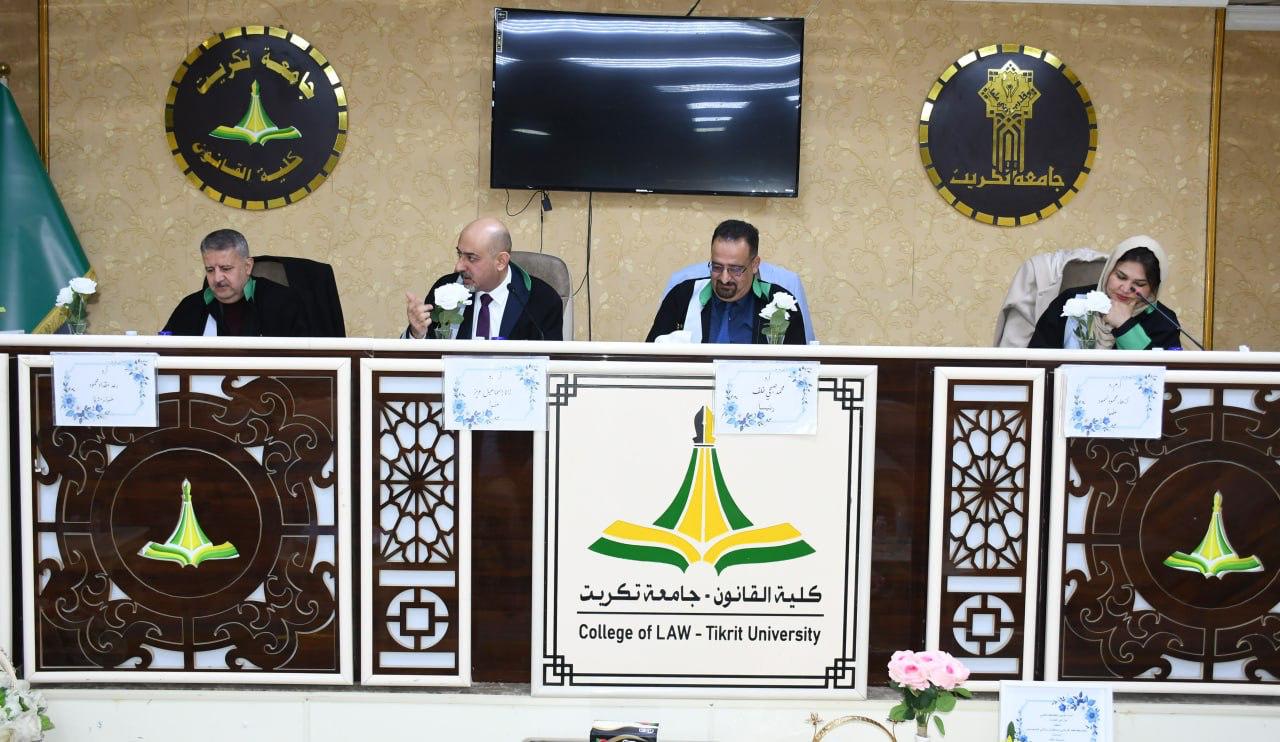 نوقشت في كلية القانون - جامعة تكريت رسالة ماجستير في القانون الخاص للطالبة (استبرق خلف عطالله) والموسومة ب (المبادئ المثالية في فقد واسترداد الجنسية - دراسة مقارنة) وعلى قاعة الشهيد الدكتور ضامن العبيدي صباح يوم الاثنين الموافق 24-2-2025.