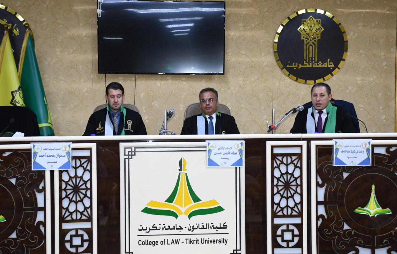 نوقشت في كلية القانون - جامعة تكريت رسالة ماجستير في القانون الخاص للطالب ( جبار مجيد عواد ) والموسومة ب ( المسؤولية المدنية للدولة في التعويض عن الاعمال القضائية - دراسة مقارنة. ) وذلك على قاعة الشهيد الدكتور ضامن العبيدي في مبنى الكلية صباح يوم الاربعاء الموافق 28-8-2024.