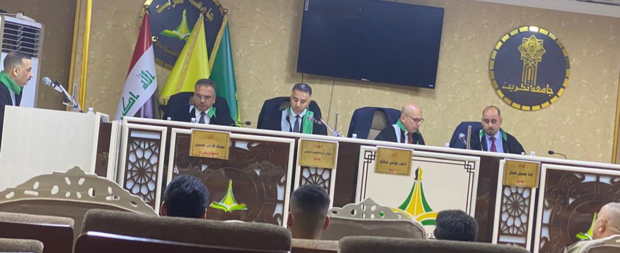 نوقشت في كلية القانون -جامعة تكريت رسالة ماجستير للطالب نصر لطيف ضاحي والموسومة المسؤولية المدنية للمؤسسات العقابية"دراسة مقارنة" صباح يوم السبت 3-8-2024 على قاعة الشهيد ضامن العبيدي وقد تألفت اللجنة من السادة المدرجة اسمائهم ادناه