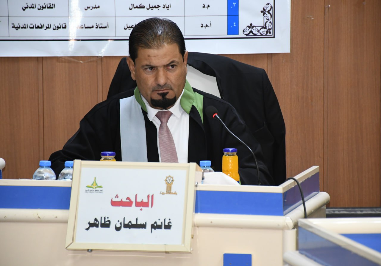 نوقشت في كلية القانون - جامعة تكريت رسالة ماجستير في القانون الخاص للطالب (غانم سلمان ظاهر) والموسومة ب (التنظيم القانوني للخصم الواقعي في الدعوى المدنية - دراسة مقارنة) وعلى قاعة الدكتور خالد عبد حربي في كلية الاداب صباح يوم الثلاثاء الموافق 24-9-2024.