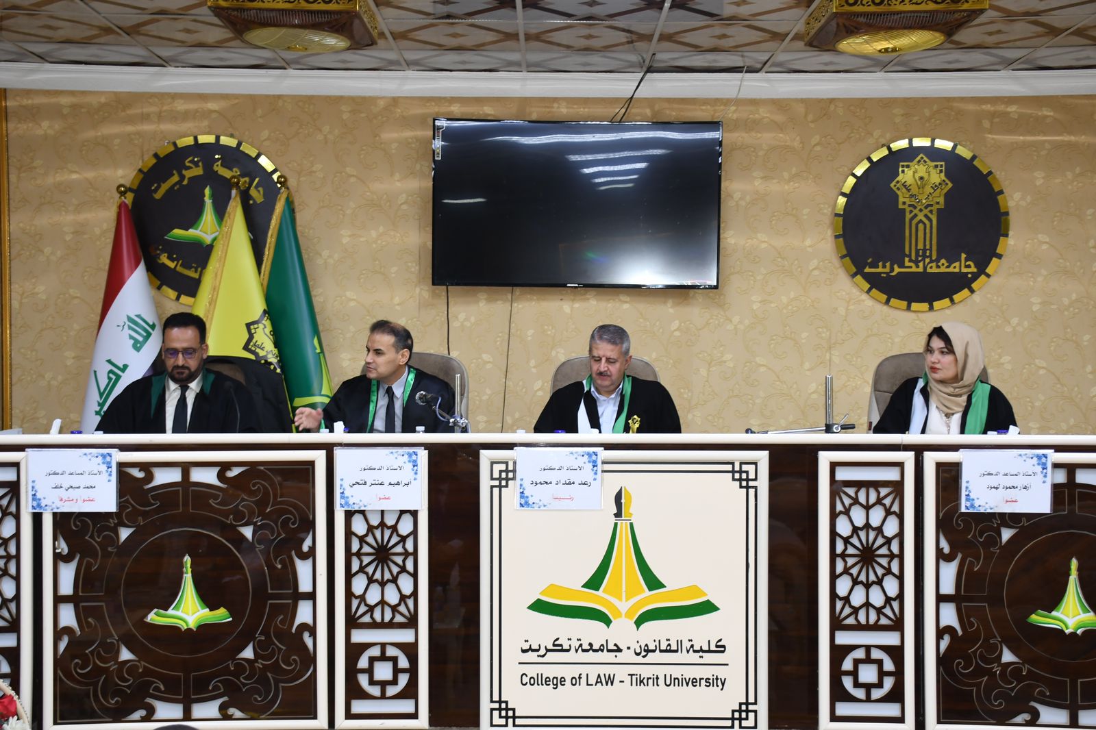 نوقشت في كلية القانون - جامعة تكريت رسالة ماجستير في القانون الخاص للطالبة (اميرة مصطفى صبري) والموسومة ب (اعتبارات الصلة المكانية في مسائل الجنسية "دراسة مقارنة") وذلك على قاعة الشهيد الدكتور ضامن العبيدي في تمام الساعة التاسعة صباحا الموافق 13-6-2024