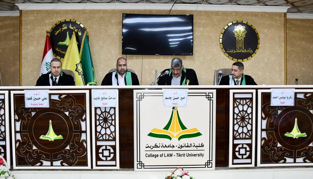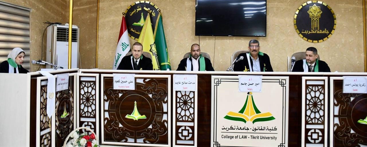 نوقشت في كلية القانون - جامعة تكريت رسالة ماجستير في القانون التجاري للطالبة ( مريم اجود عبد الجبار ) والموسومة ب (اثر التكنلوجيا على صناعة السفن - دراسة مقارنة) وذلك على قاعة الشهيد الدكتور ضامن العبيدي في مبنى الكلية صباح يوم الاربعاء الموافق 31-7-2024